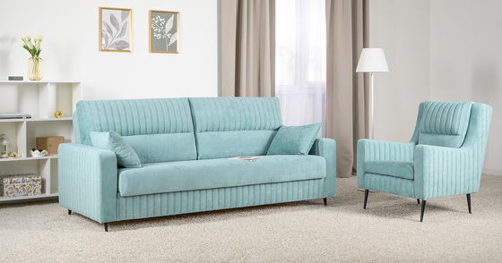 Диван-кровать прямой Черри ТД 285 велюр Irida 07 синий, Эвита пистачио ментоловый