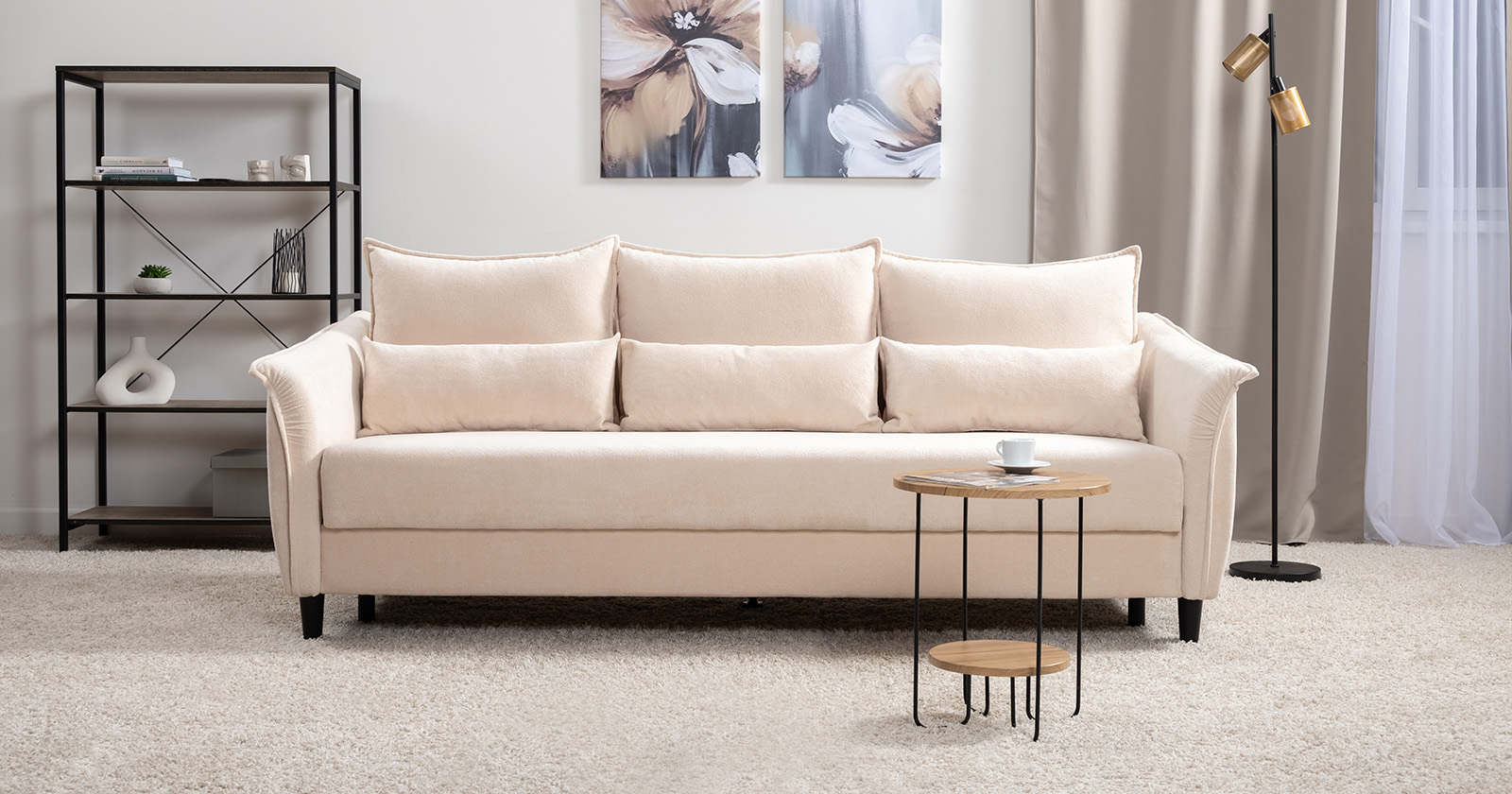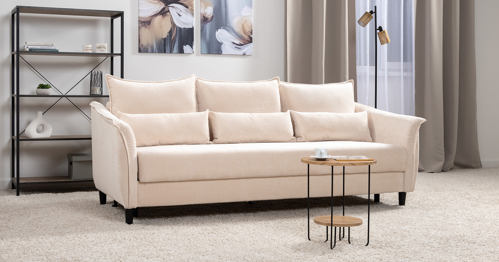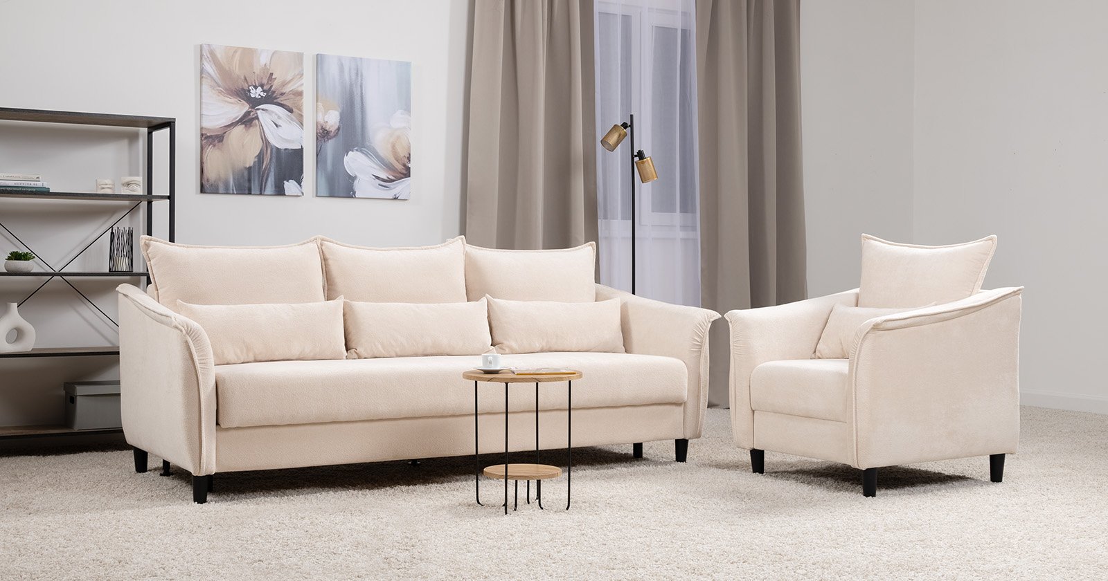 Изогнутые подлокотники в форме лепестков придают коллекции изысканный и элегантный вид, а дополнительные декоративные подушки обеспечат поддержку тела и помогут уютно устроиться на диване. В наполнении дивана используется высокоэластичная пена, которая адаптируется к форме вашего тела и гаранитует максимальный комфорт во время отдыха.