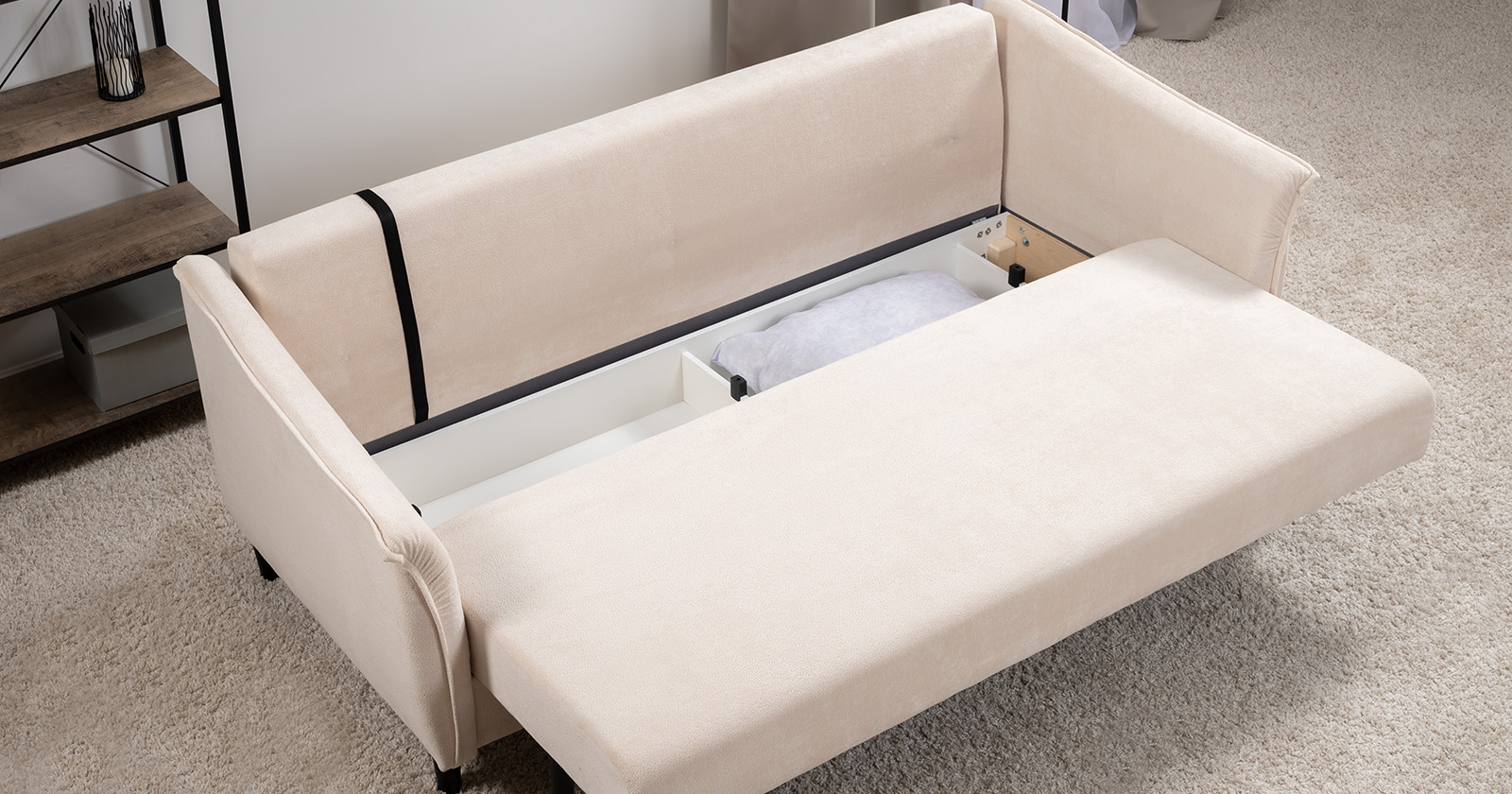 Диван-кровать прямой Берта ТД 771 велюр Mirage semolina молочный