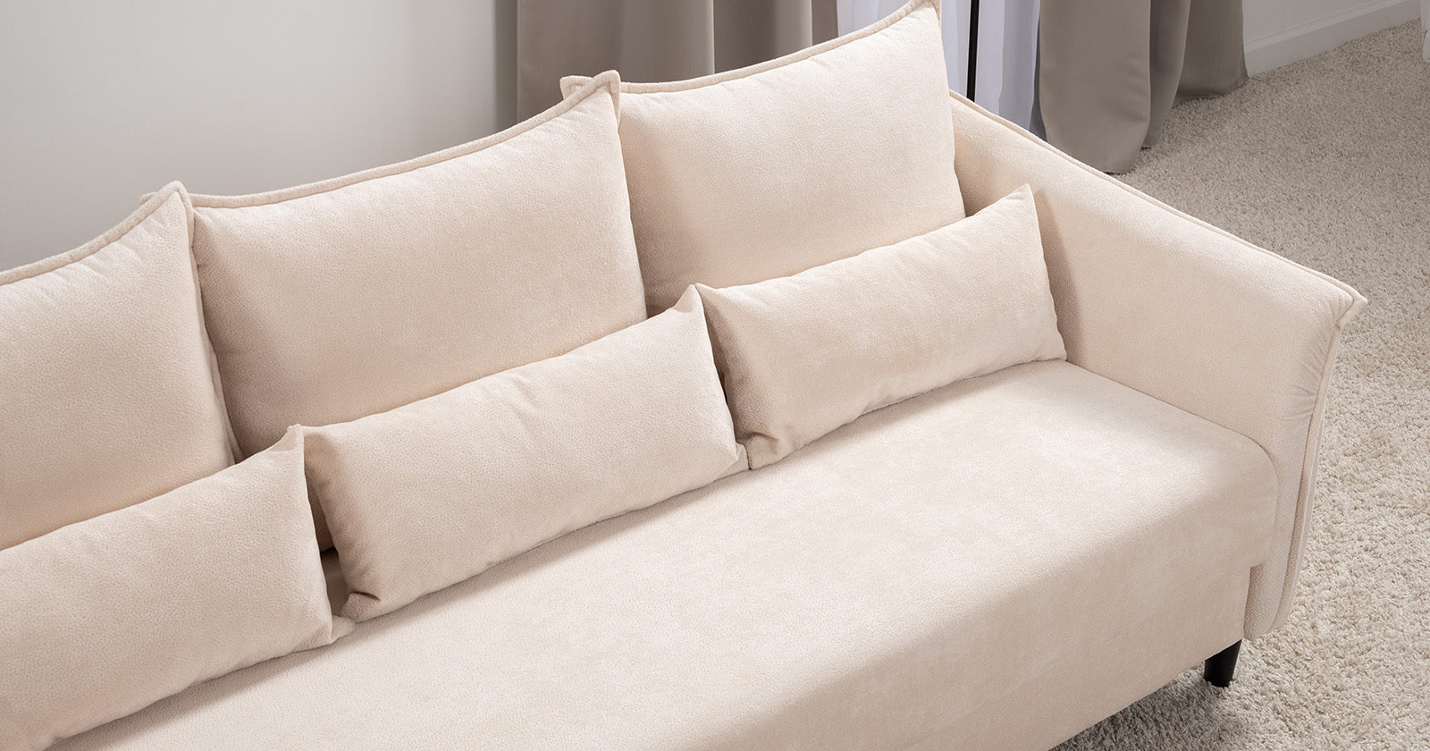Изогнутые подлокотники в форме лепестков придают коллекции изысканный и элегантный вид, а дополнительные декоративные подушки обеспечат поддержку поясницы и помогут уютно устроиться на диване. В наполнении дивана используется высокоэластичная пена, которая адаптируется к форме вашего тела и гарантирует максимальный комфорт во время отдыха.