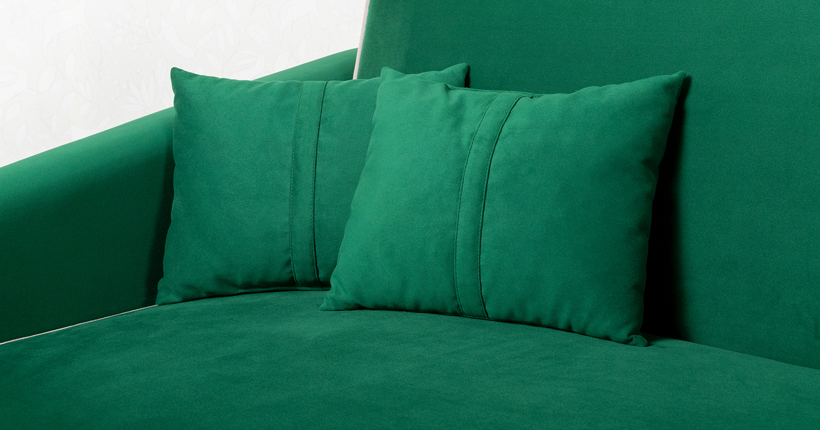 Диван-кровать прямой Ноэль ТД 446 велюр темно-зеленый малахитовый, светлый кварцевый серый