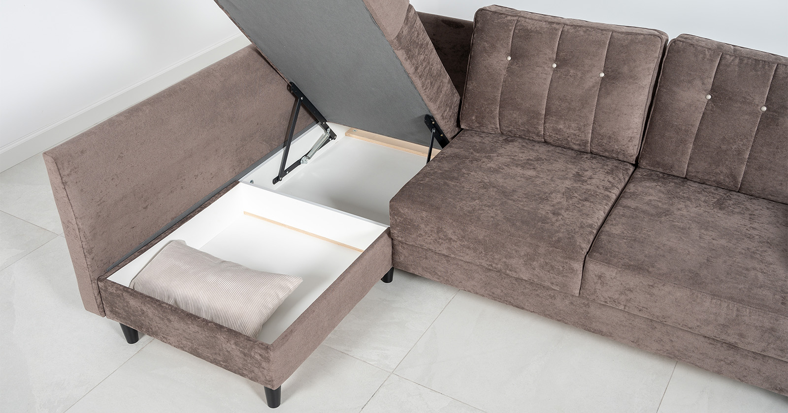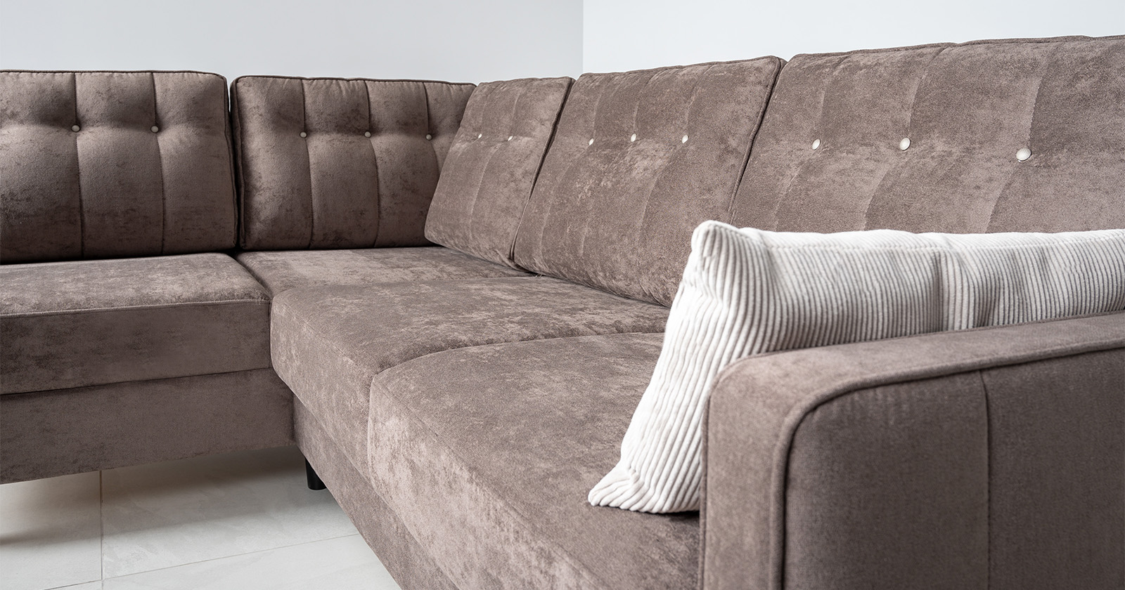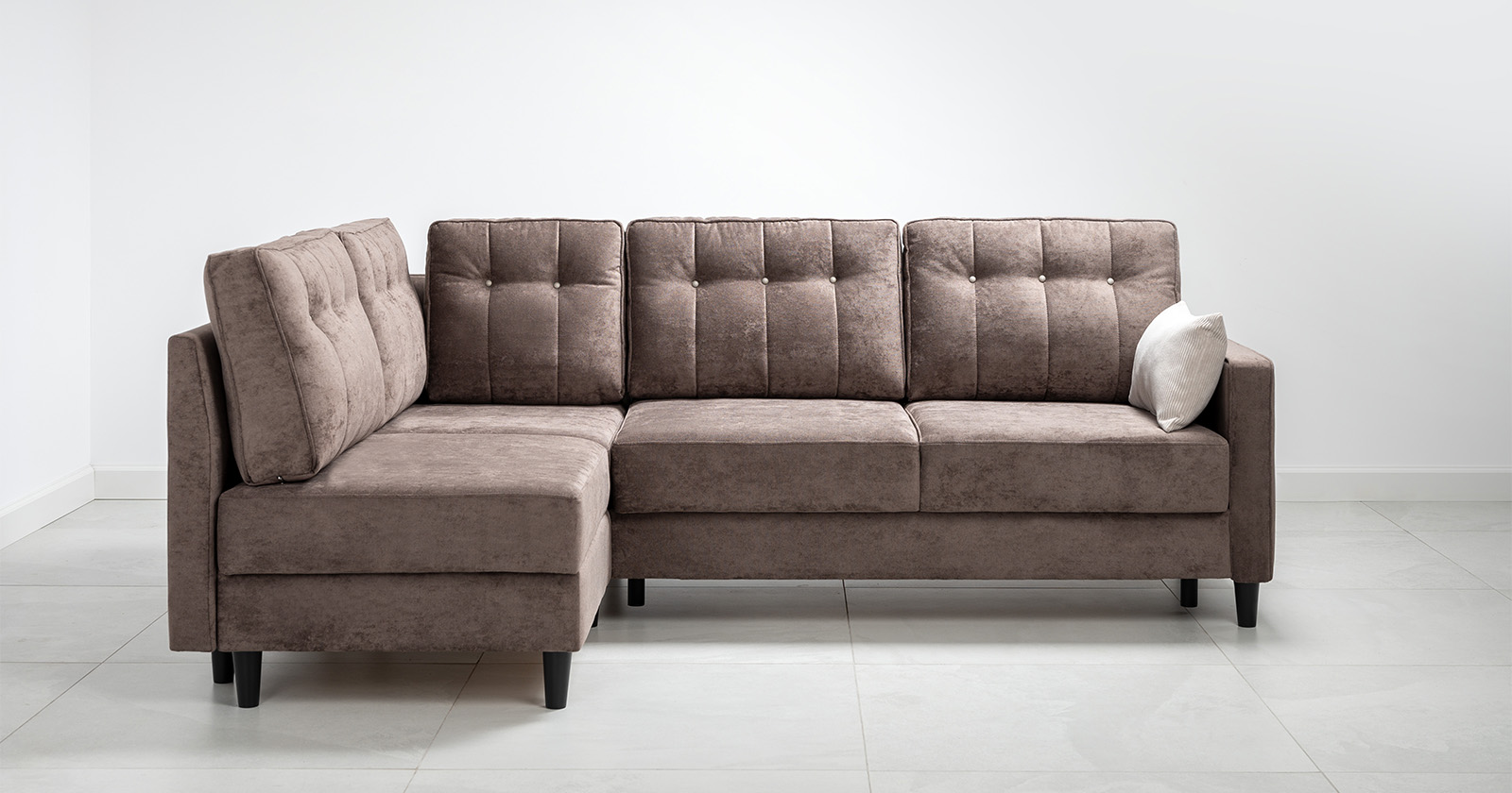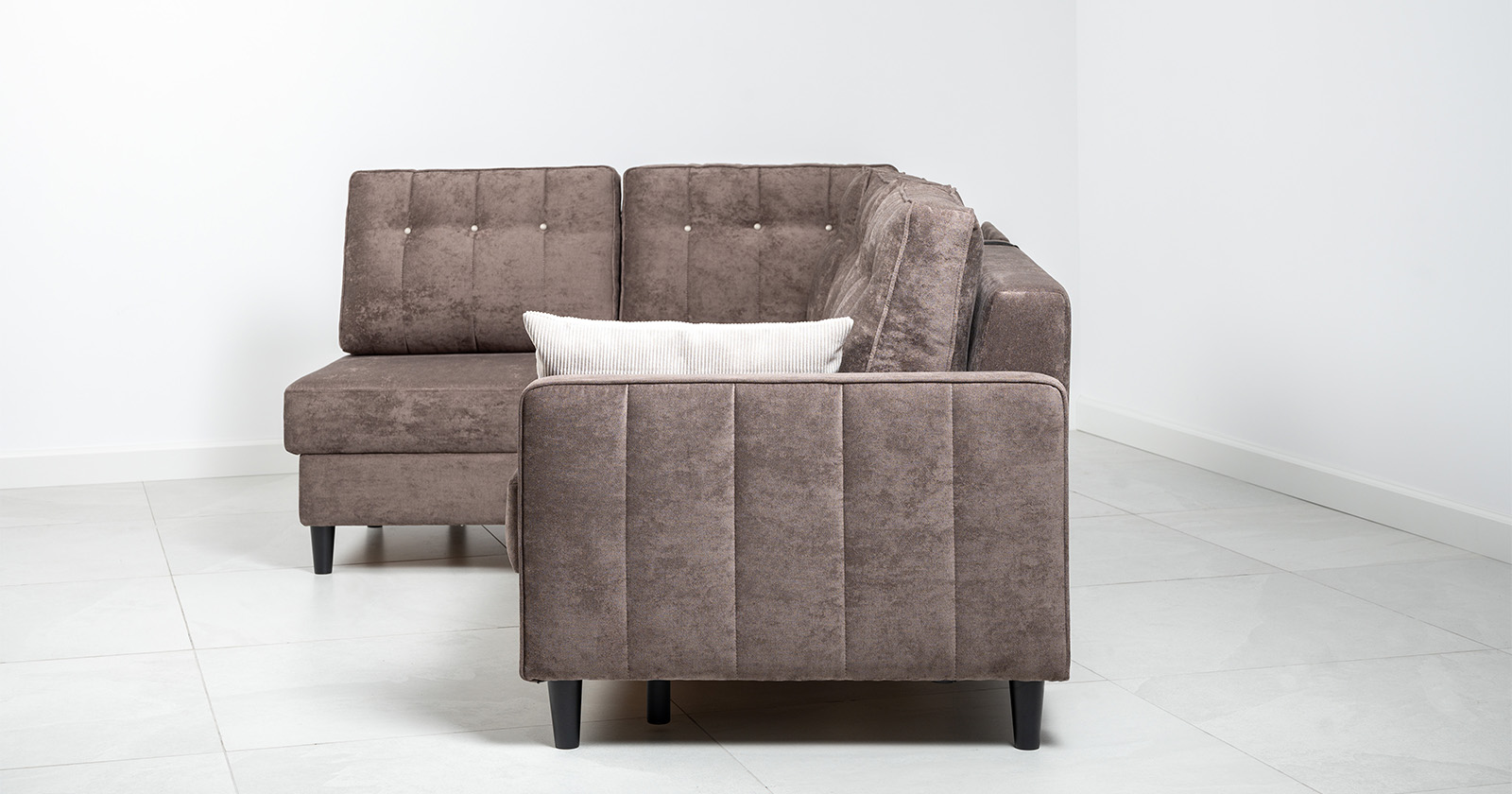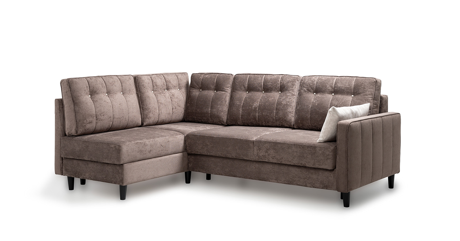 Диван-кровать угловой Арно ТД 564 велюр Лаки 06 коричневый перламутр, Vertical 910 молочно-серый, сборка на любую сторону