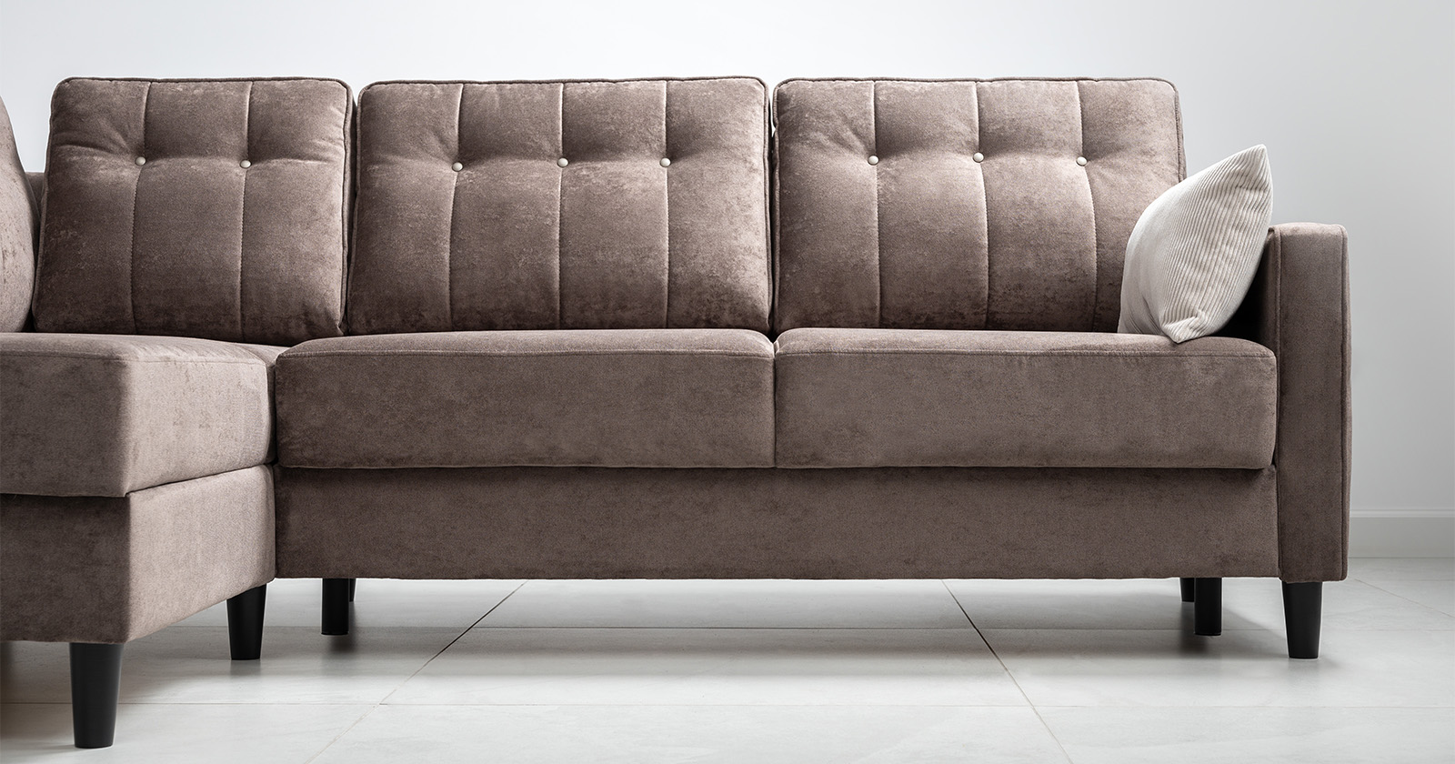 Диван-кровать угловой Арно ТД 565 велюр Лаки 04 песочный, Vertical 910 молочно-серый, сборка на любую сторону