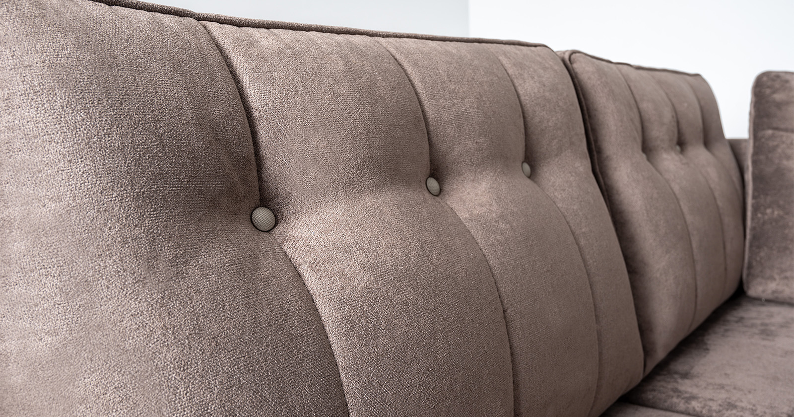Подушки имеют трапециевидную форму, с утолщением к низу для комфорта посадки. Кант по всему периметру подушек, декоративные утяжки металлическими пуговицами, вертикальная стежка.