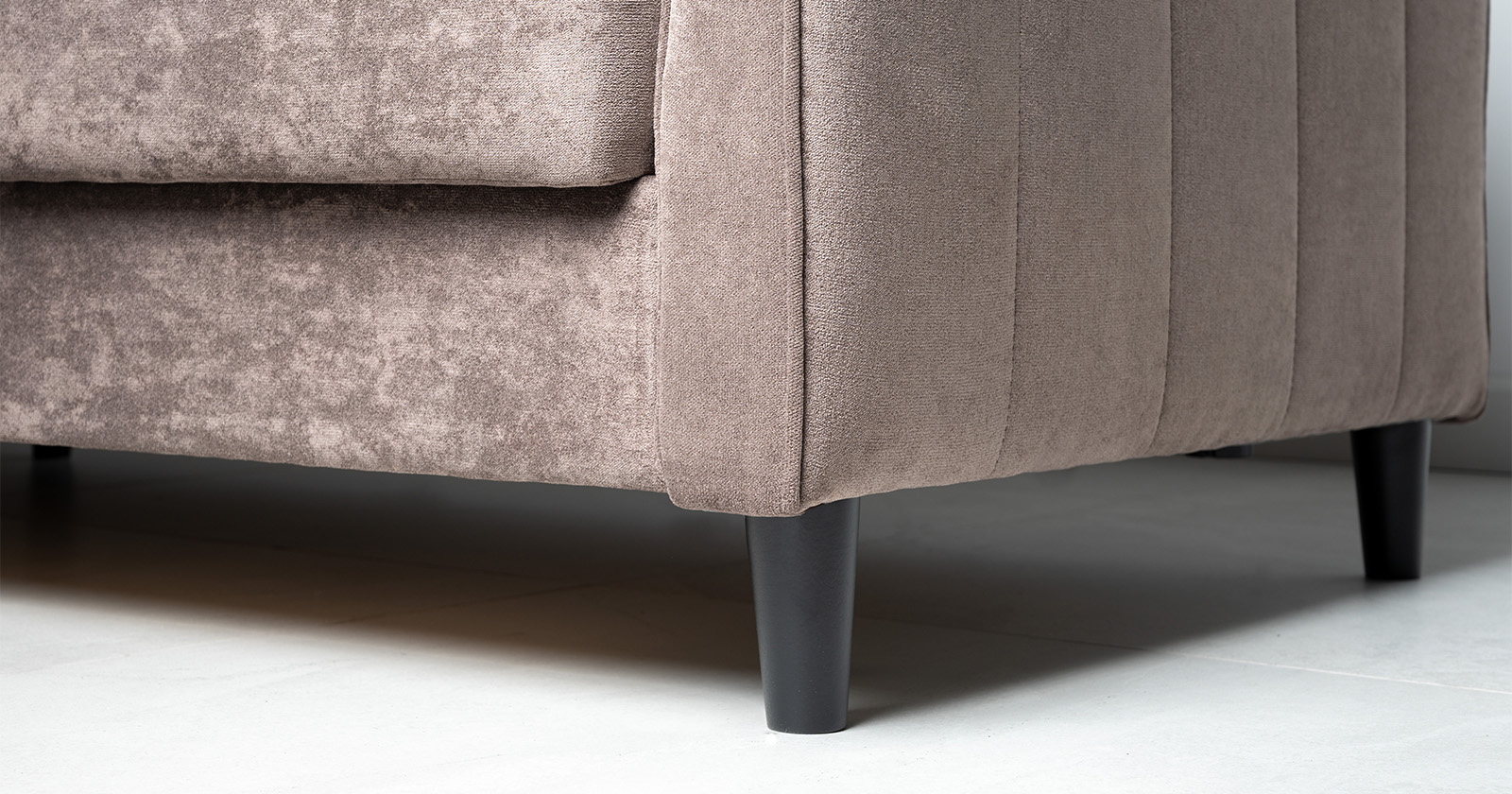 Модель с универсальным углом подойдёт любителям часто менять обстановку. Устойчивые конесообразные деревянные ножки придают дивану легкость и изящество. Для завершения интерьера можно заказать кресло Арно.