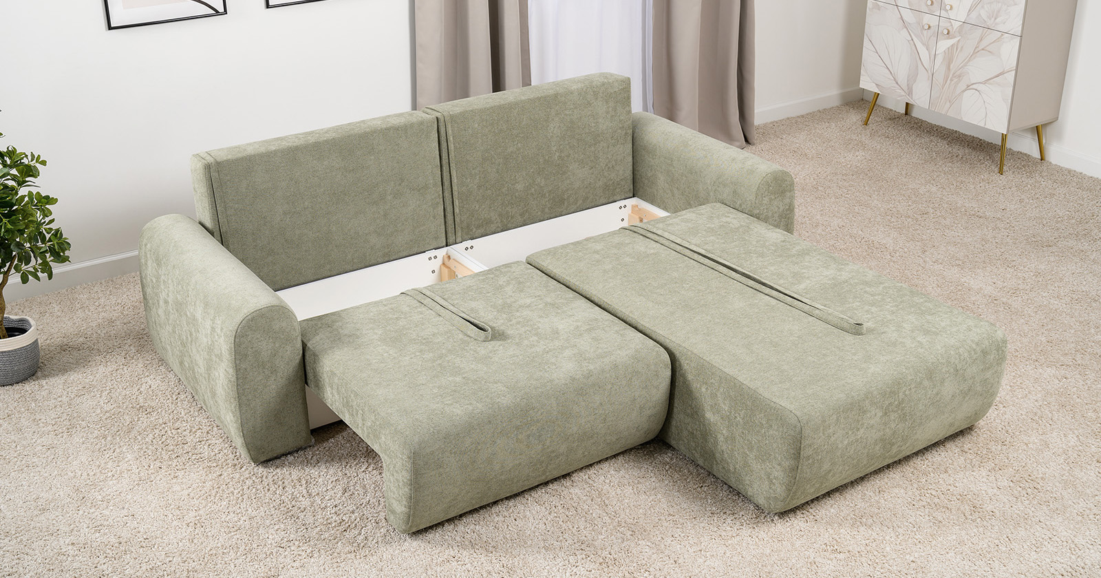 Диван-кровать угловой Тэдди 1503 композиция 3, букле Pique 007 оливковый, модульная система, сборка на любую сторону