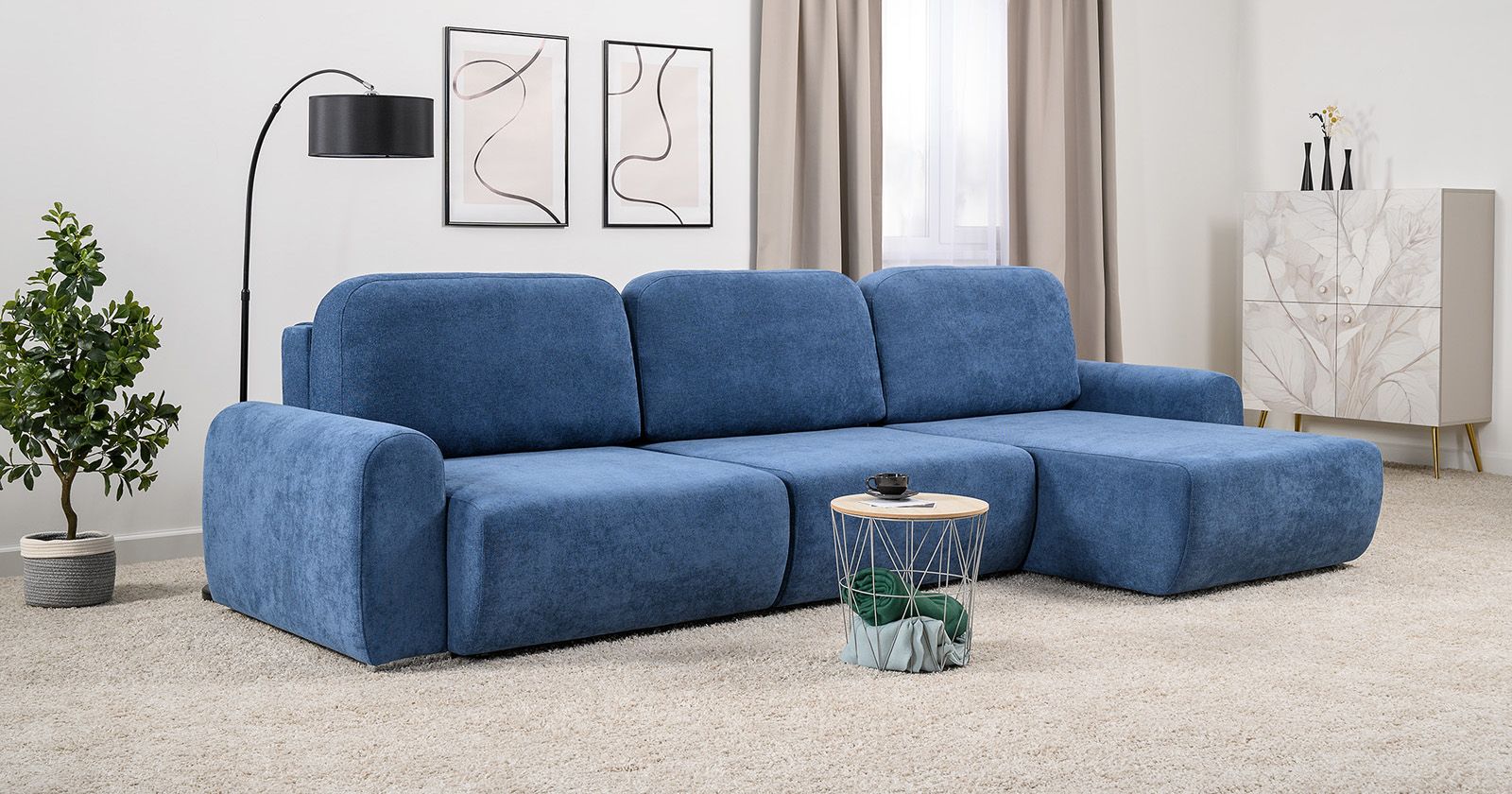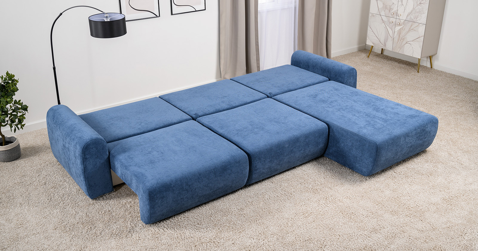 Диван-кровать угловой Тэдди 1504 композиция 3, букле Pique 009 синий, модульная система, сборка на любую сторону