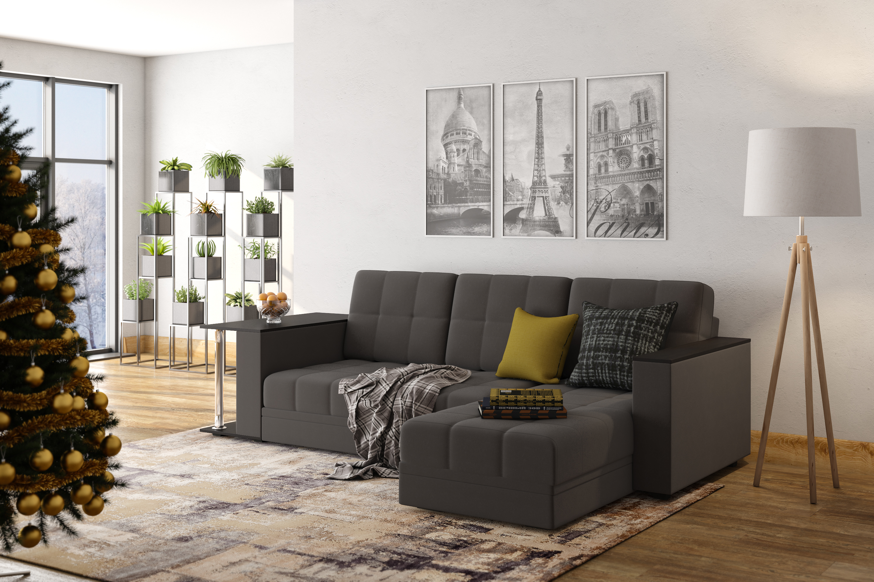 Диван-кровать угловой Атлант со столиком велюр темно-коричневый шоколад со спальным местом (сборка на любую сторону)