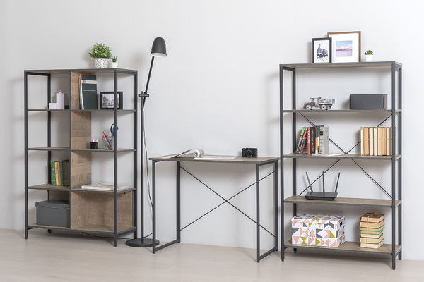 Использование крестовых металлических стяжек вместо задней стенки делает конструкции лёгкими, воздушными и чрезвычайно прочными к боковым нагрузкам.