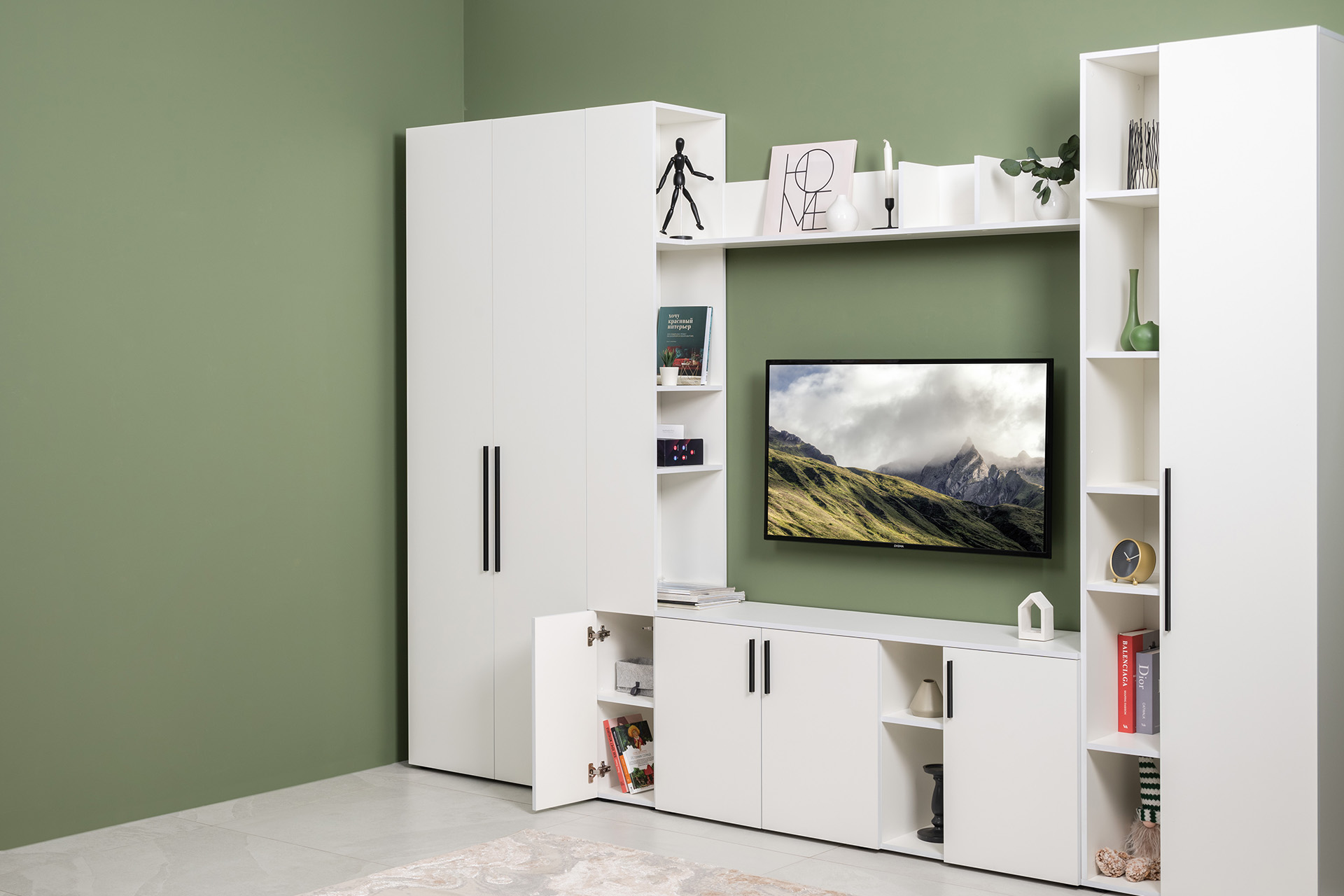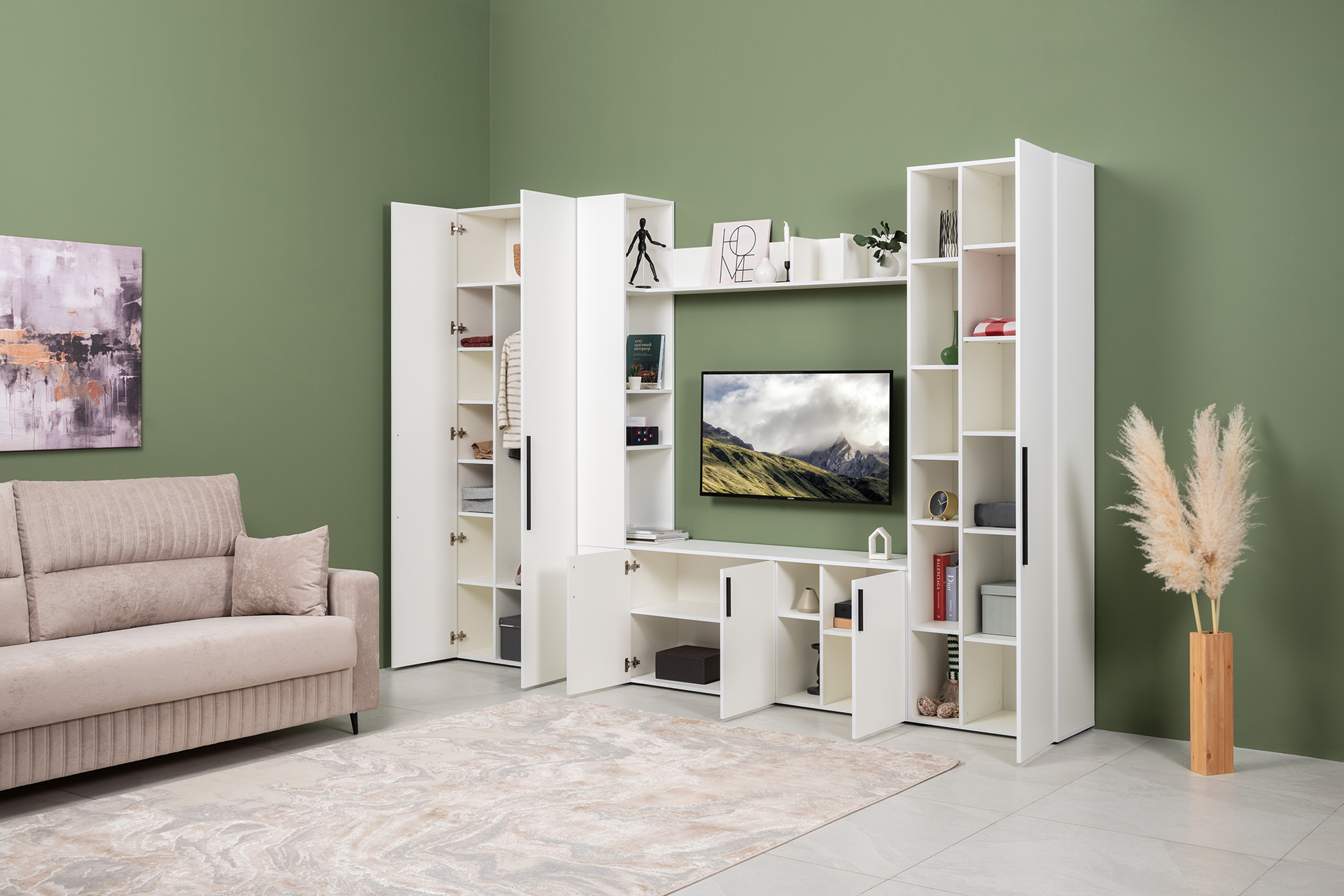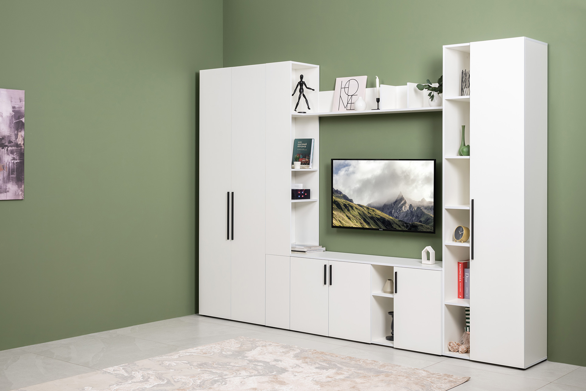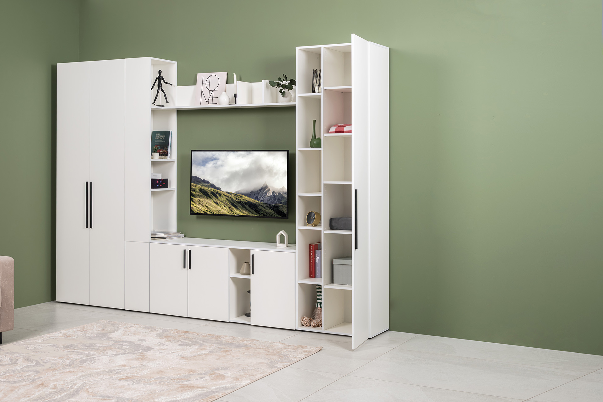 Гостиная Эйр композиция 1 белый PE шагрень, собирается на любую сторону