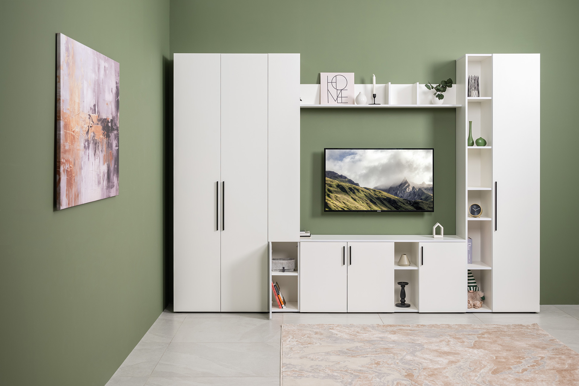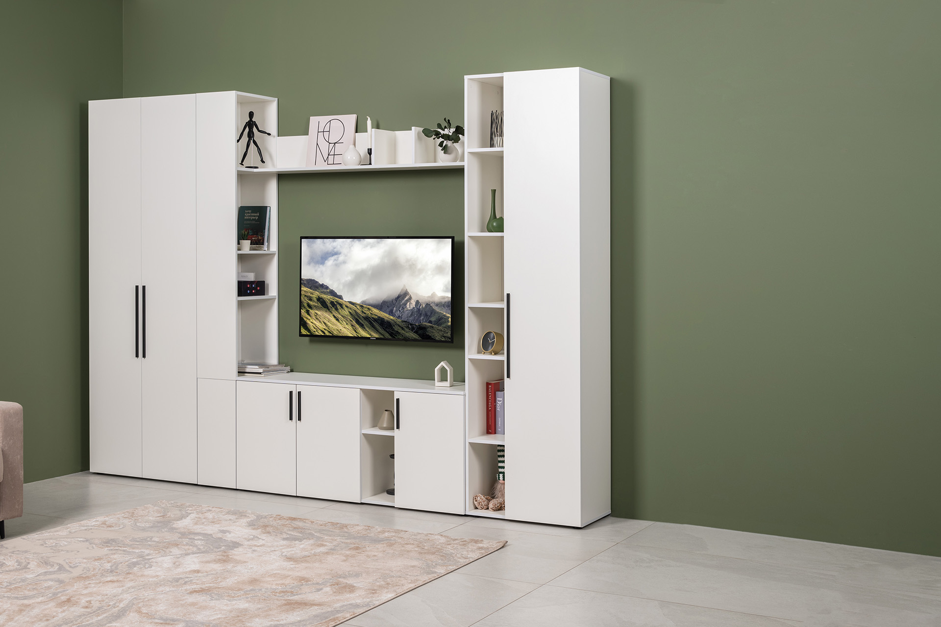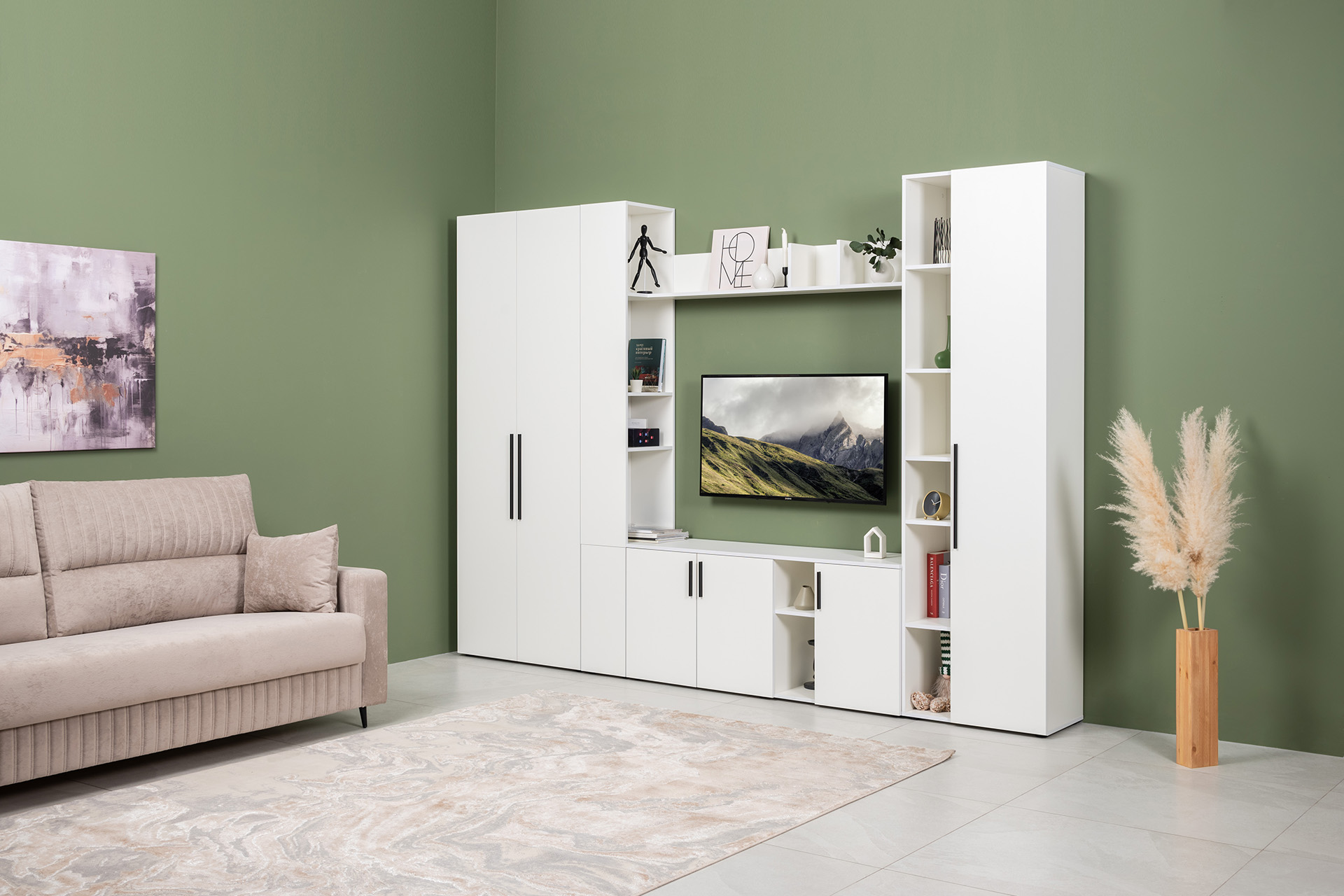 Гостиная Эйр композиция 1 белый PE шагрень, собирается на любую сторону