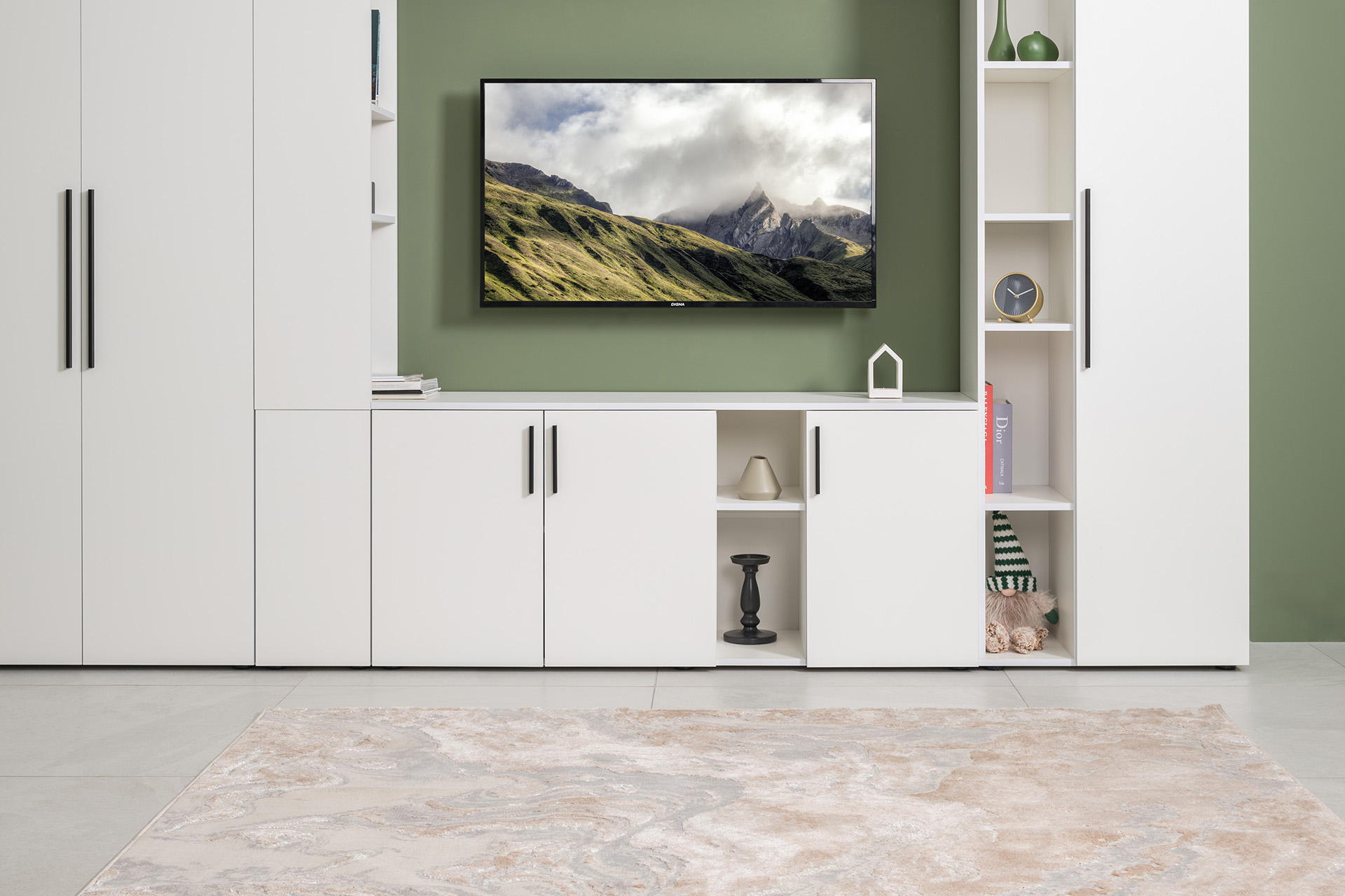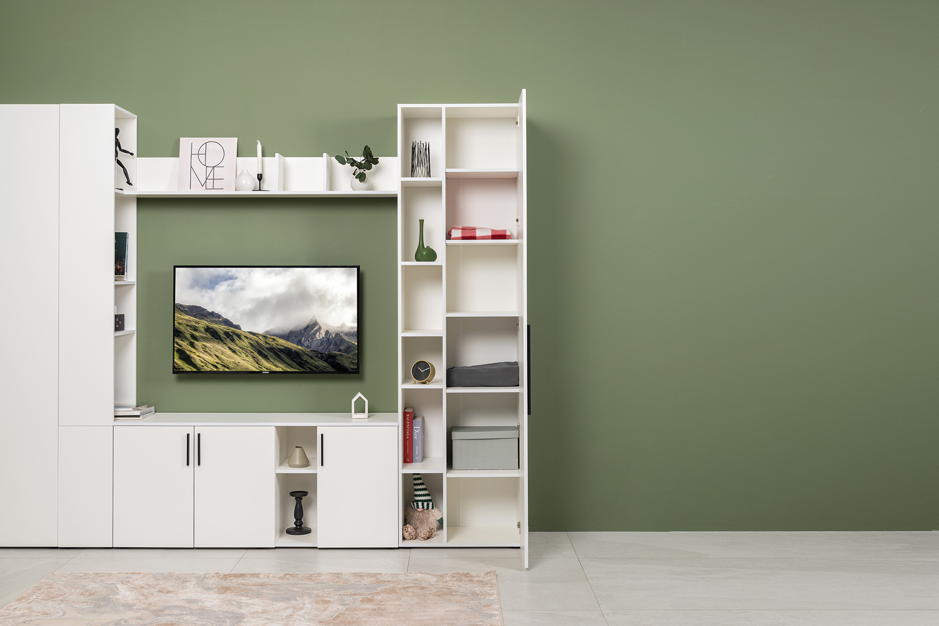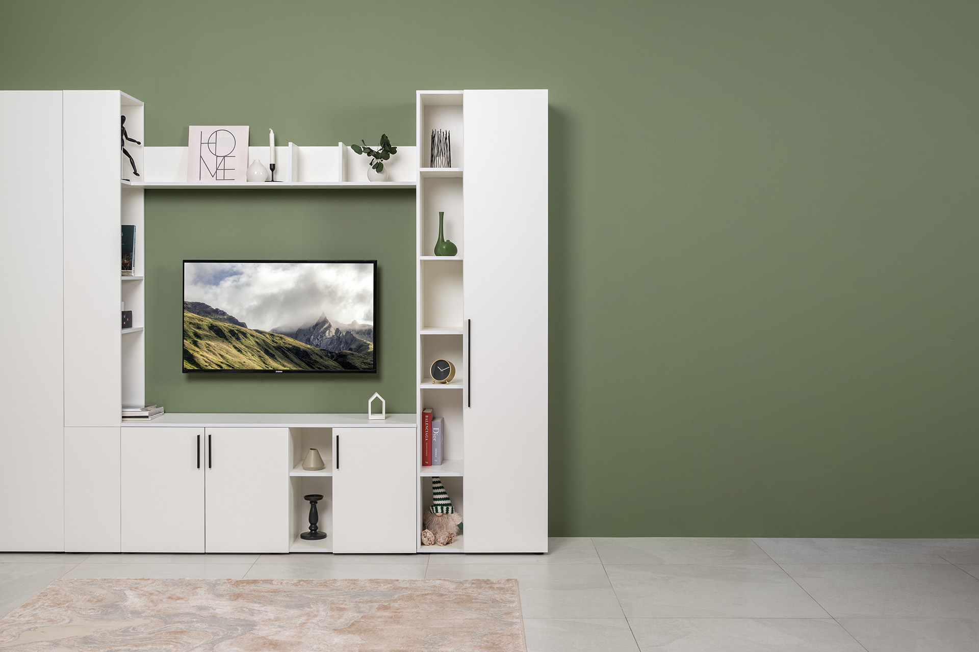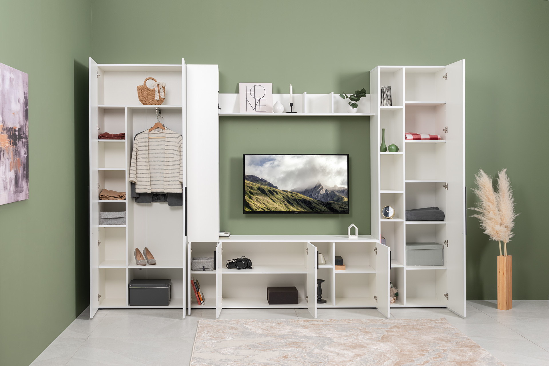 Гостиная Эйр композиция 1 белый PE шагрень, собирается на любую сторону