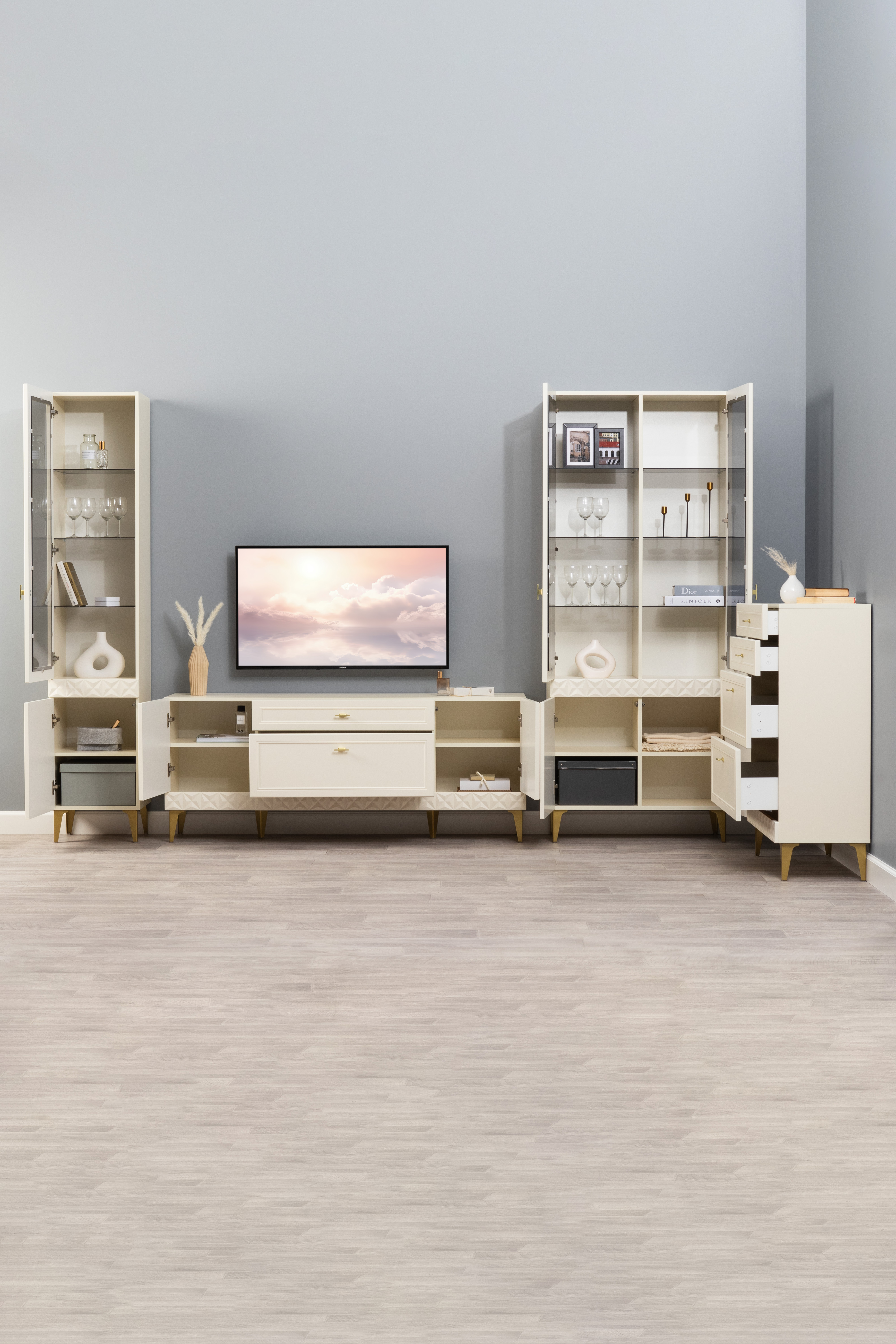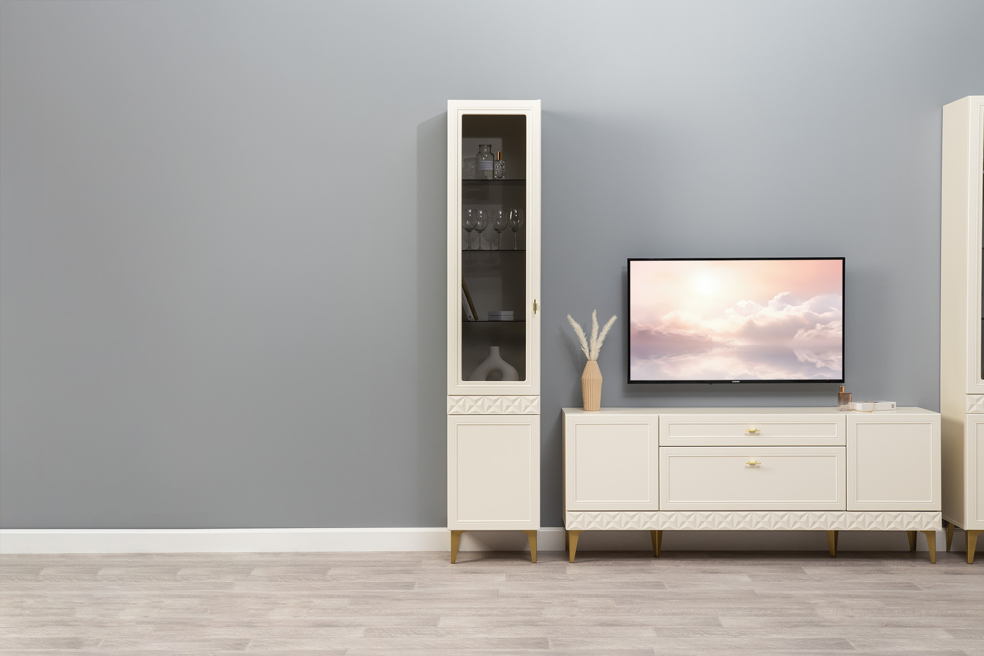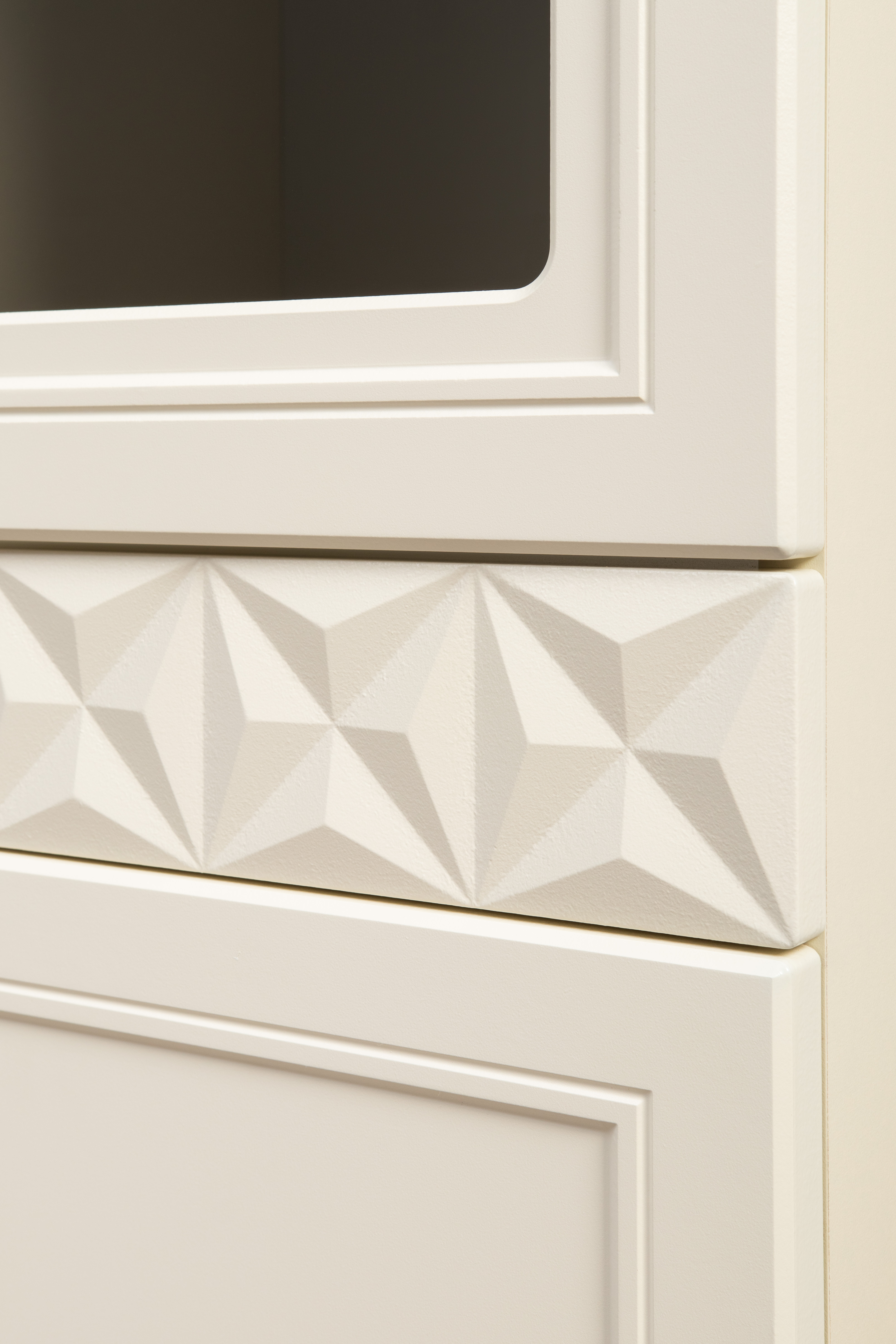 В коллекции представлены три типа витрин с тонированным закалённым стеклом, которые придают пространству лёгкость и свет. «Марион» — идеальное сочетание традиций и актуального дизайна в каждой детали.