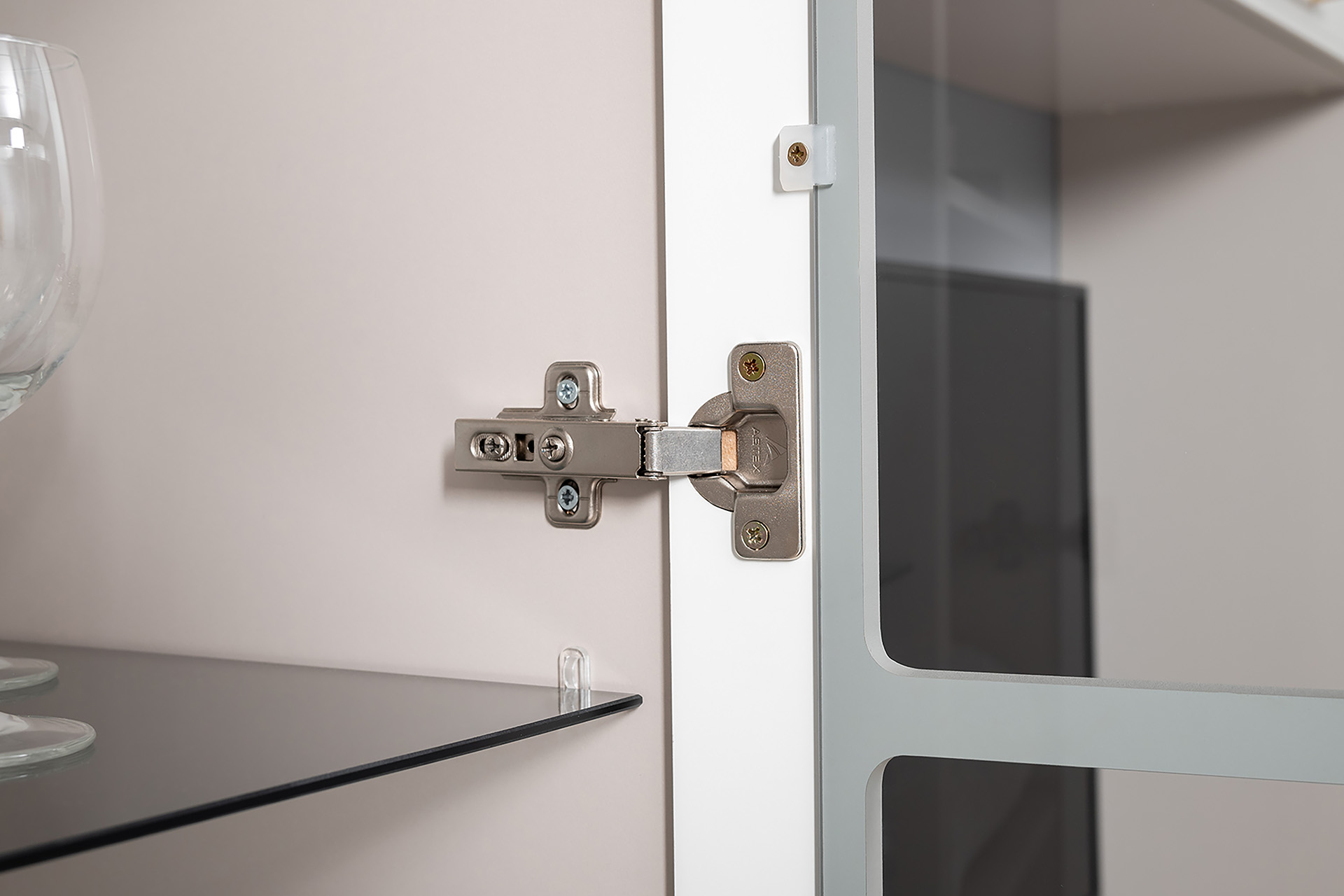 Петли с доводчиками, полное выдвижение ящиков, выдвижная штанга в шкафу для одежды и съемные полки делают использование максимально комфортным.
