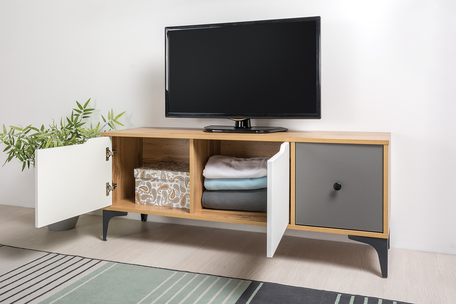 Гостиная Альба композиция 1 дуб золотой CRAFT, белый премиум, без подсветки