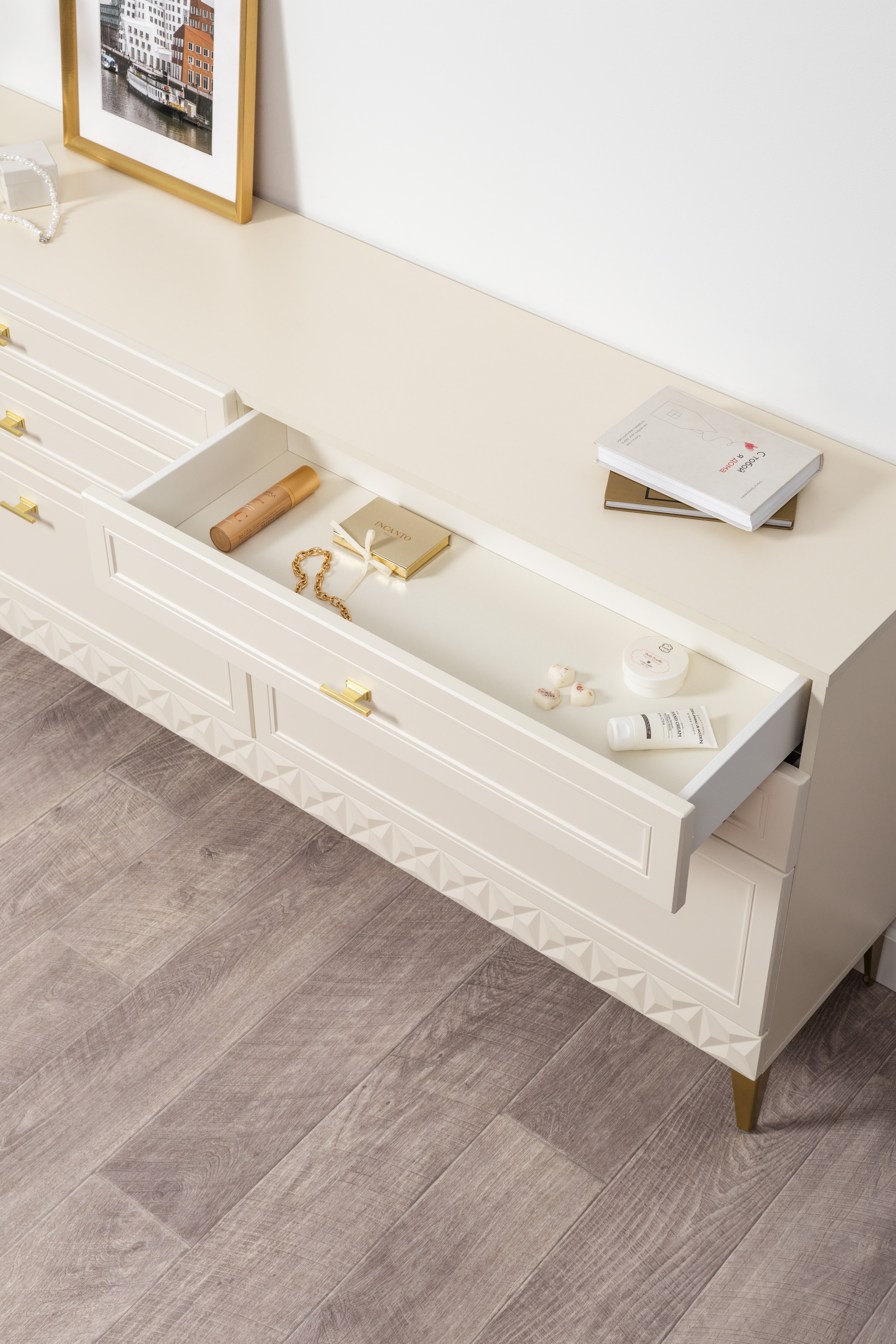 Комод Бэль 10.95 белый премиум, дуб золотой CRAFT