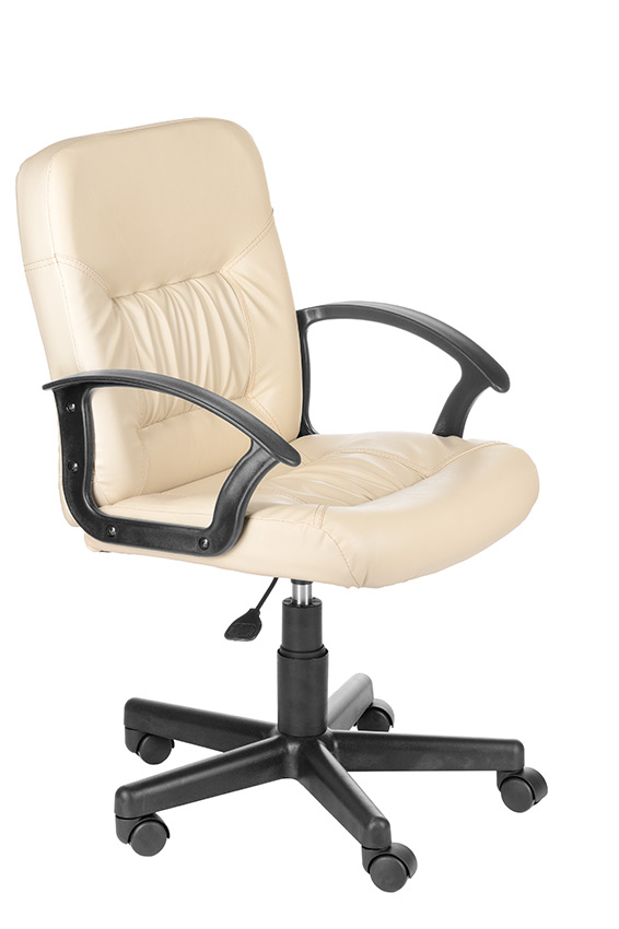 На фото кресло в кожзаме бежевого, коричневого и черного цвета, крестовина Мозес (пластик).