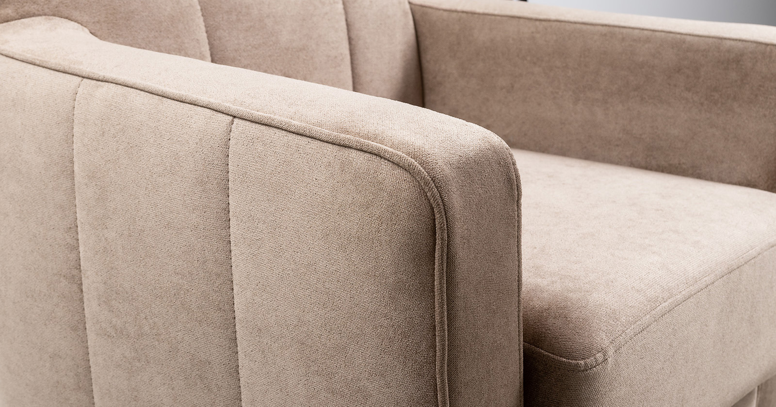 Стежка на внутренней спинке и боковине. Отделочная строчка по сидению. Декоративный кант в тон на подлокотниках и спинке. Изюминку коллекции придают металлические пуговицы на спинке.