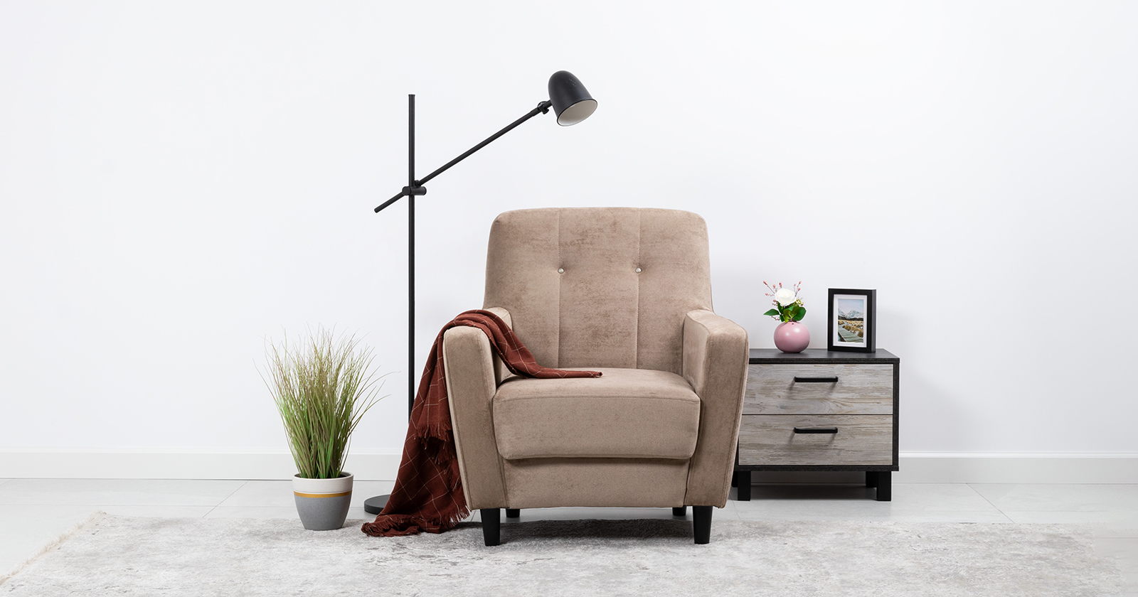 Лаконичное кресло Арно с комфортной посадкой дополнит современный интерьер. Высокие ножки из массива делают кресло визуально лёгким и уместным в комнате любой площади, а задняя спинка в ткани основы позволит использовать его для зонирования пространства. Модель выполнена в тактильно приятном микровелюре в трендовых цветах.