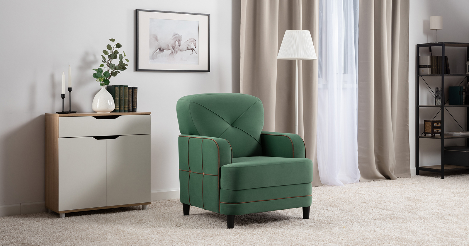 Кресло для отдыха Черри ТК 288 велюр Irida 09 зеленый, Эвита шоколад бежево-коричневый
