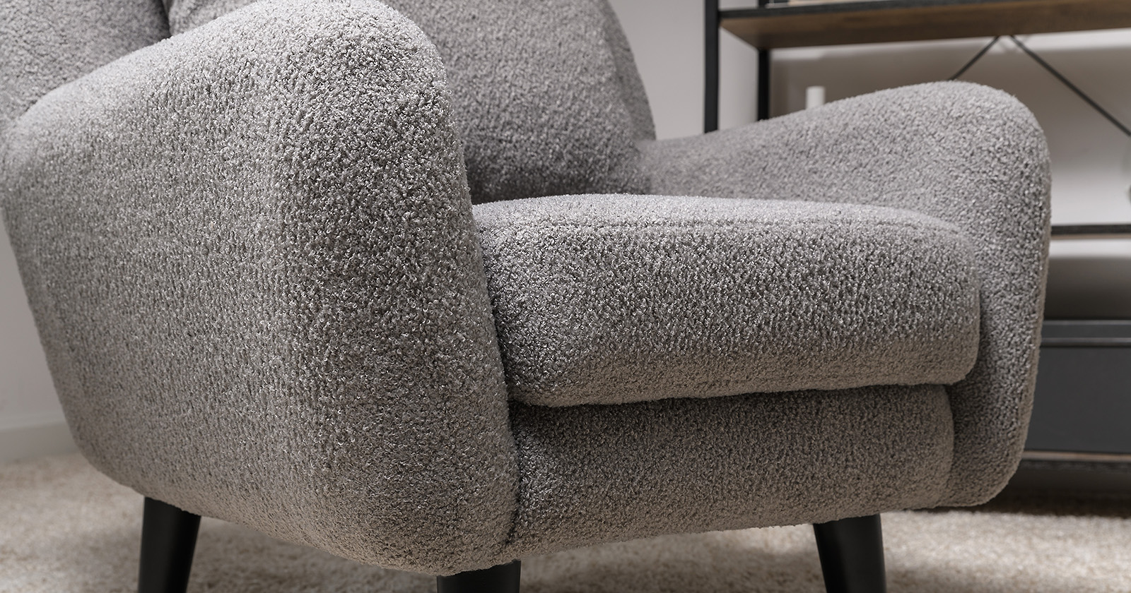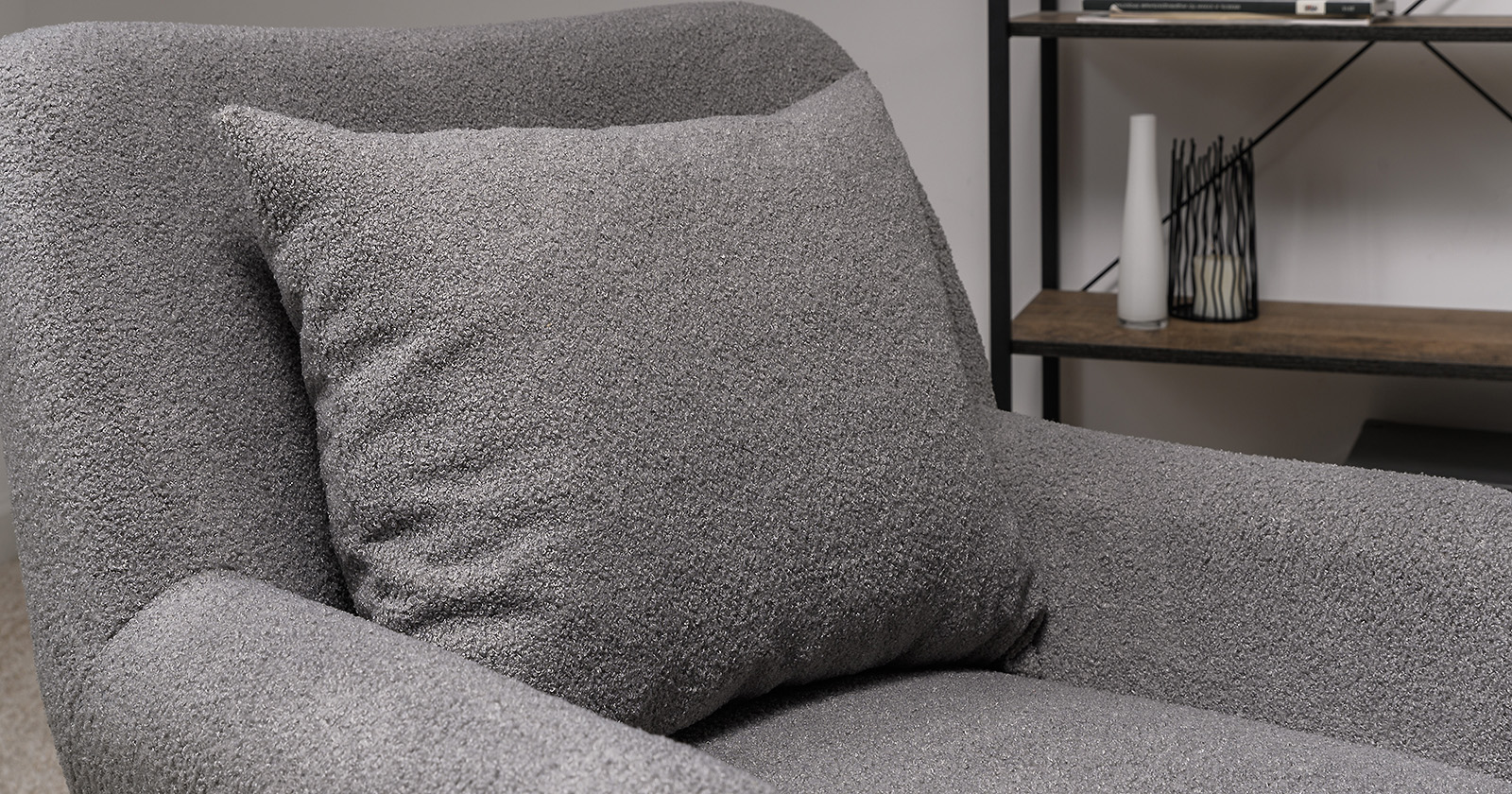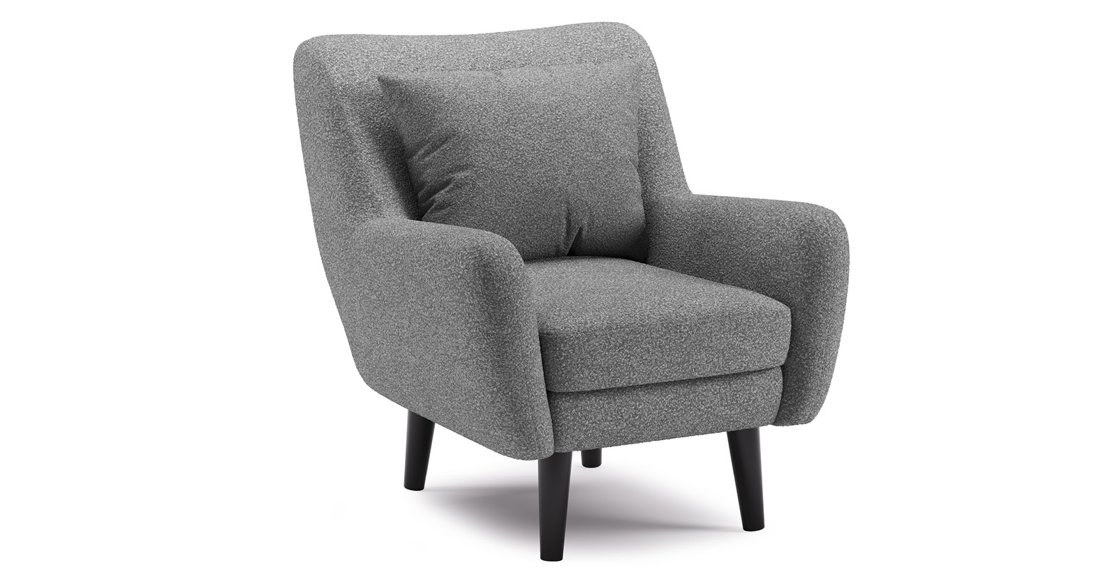 Ткань букле делает кресло особенно уютным и мягким. Приспинная подушка в цвете кресла