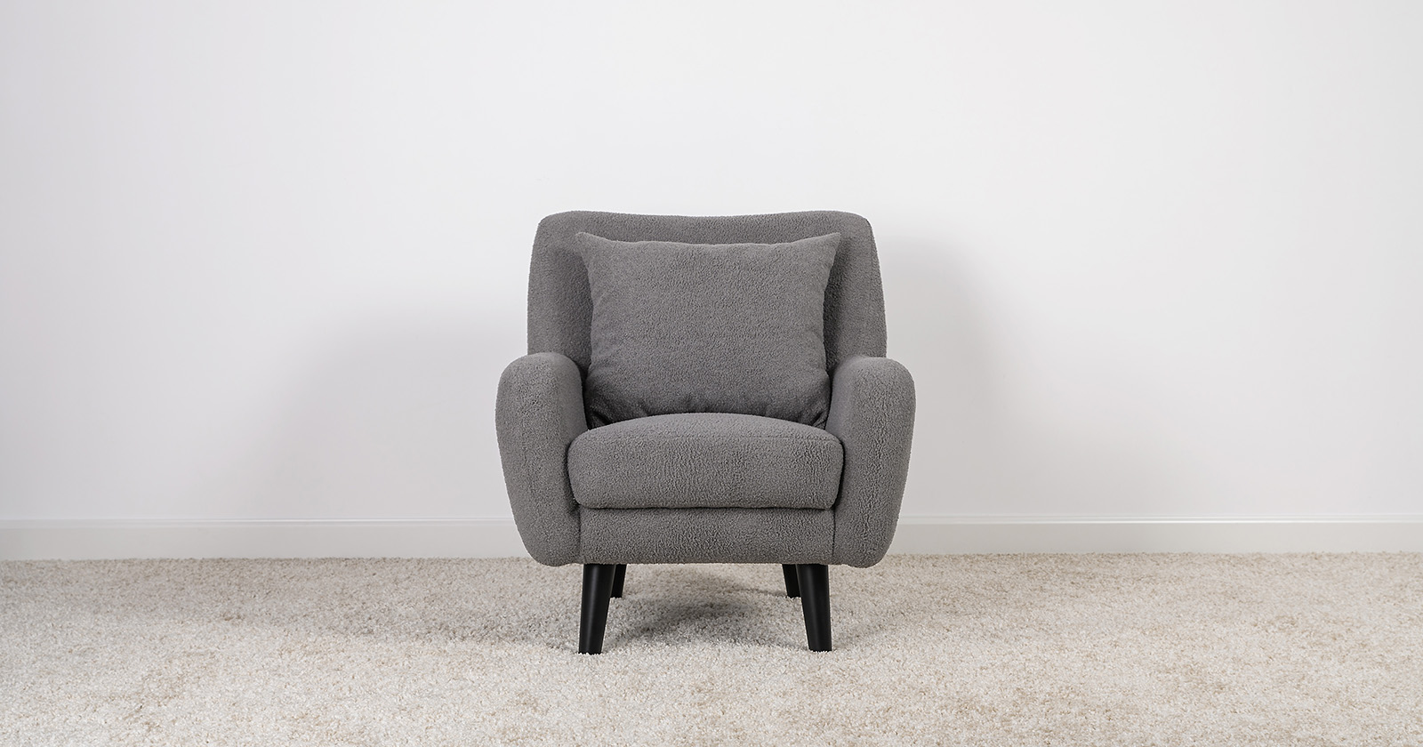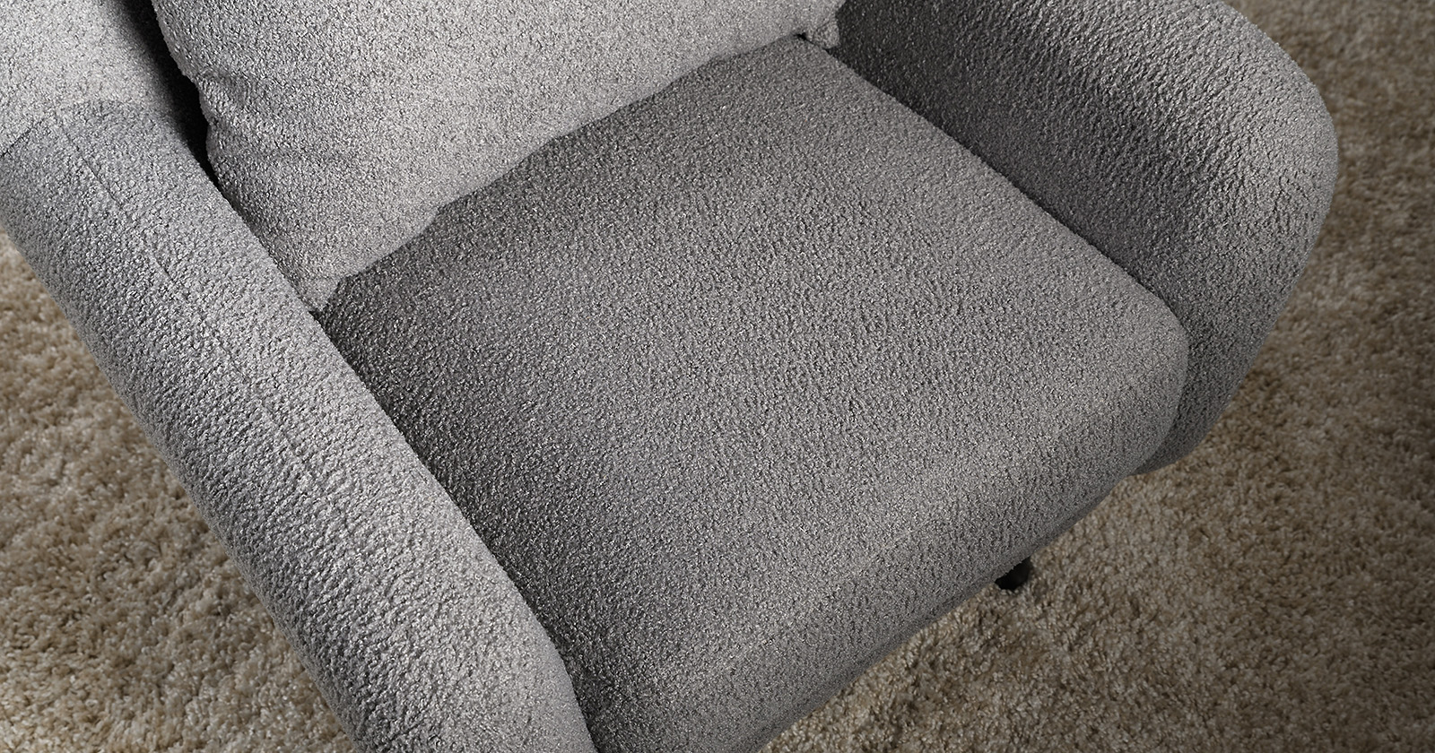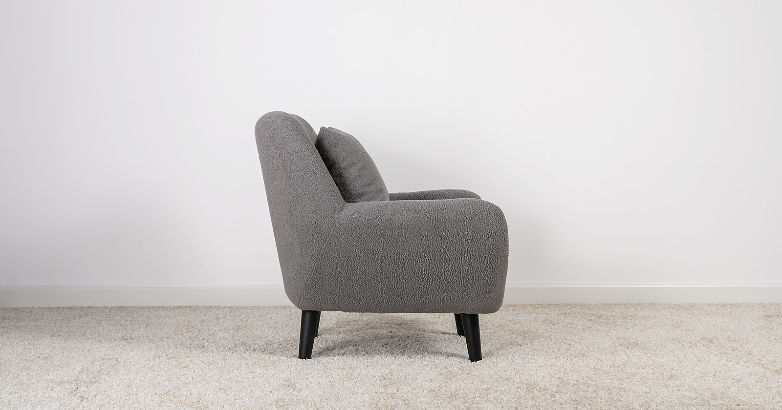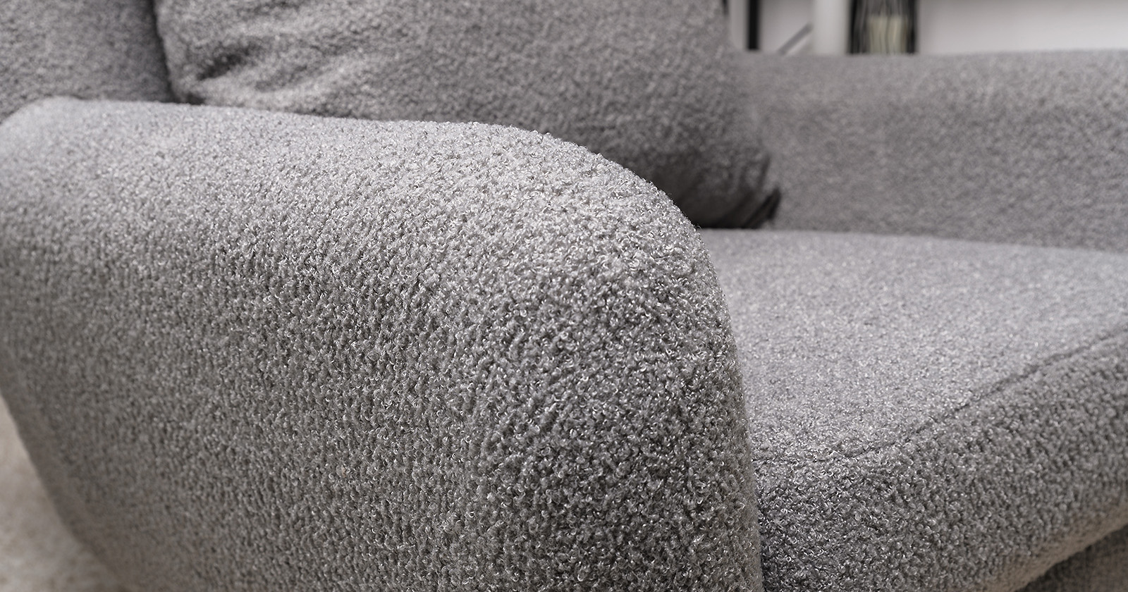 Ткань букле делает кресло особенно уютным и мягким. Приспинная подушка в цвете кресла