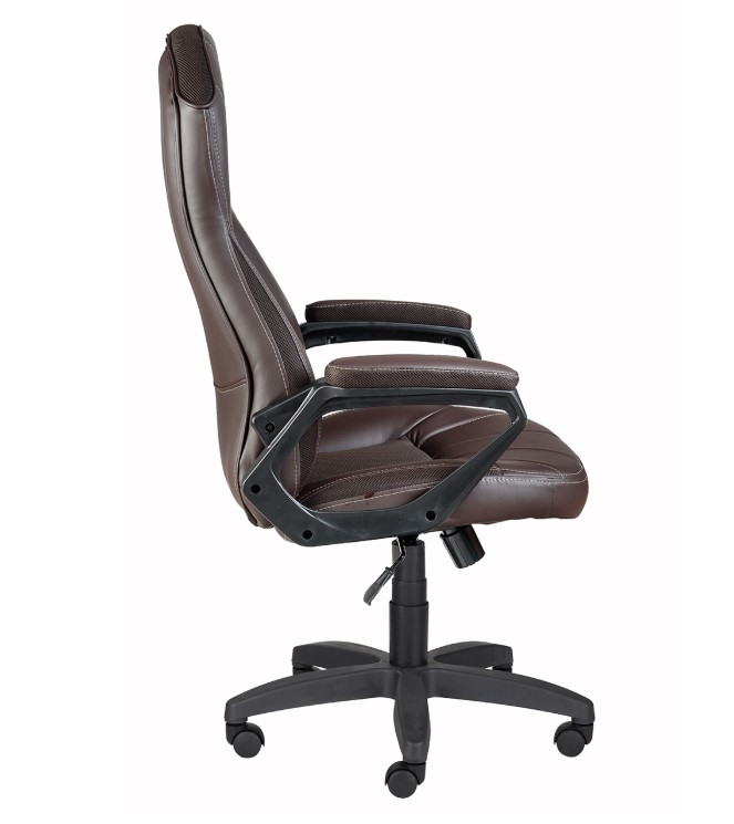 Кресло на колесах Сатурн ультра кожзам/сетка коричневый, крестовина пластик, подлокотники с мягкими накладками, механизм качания