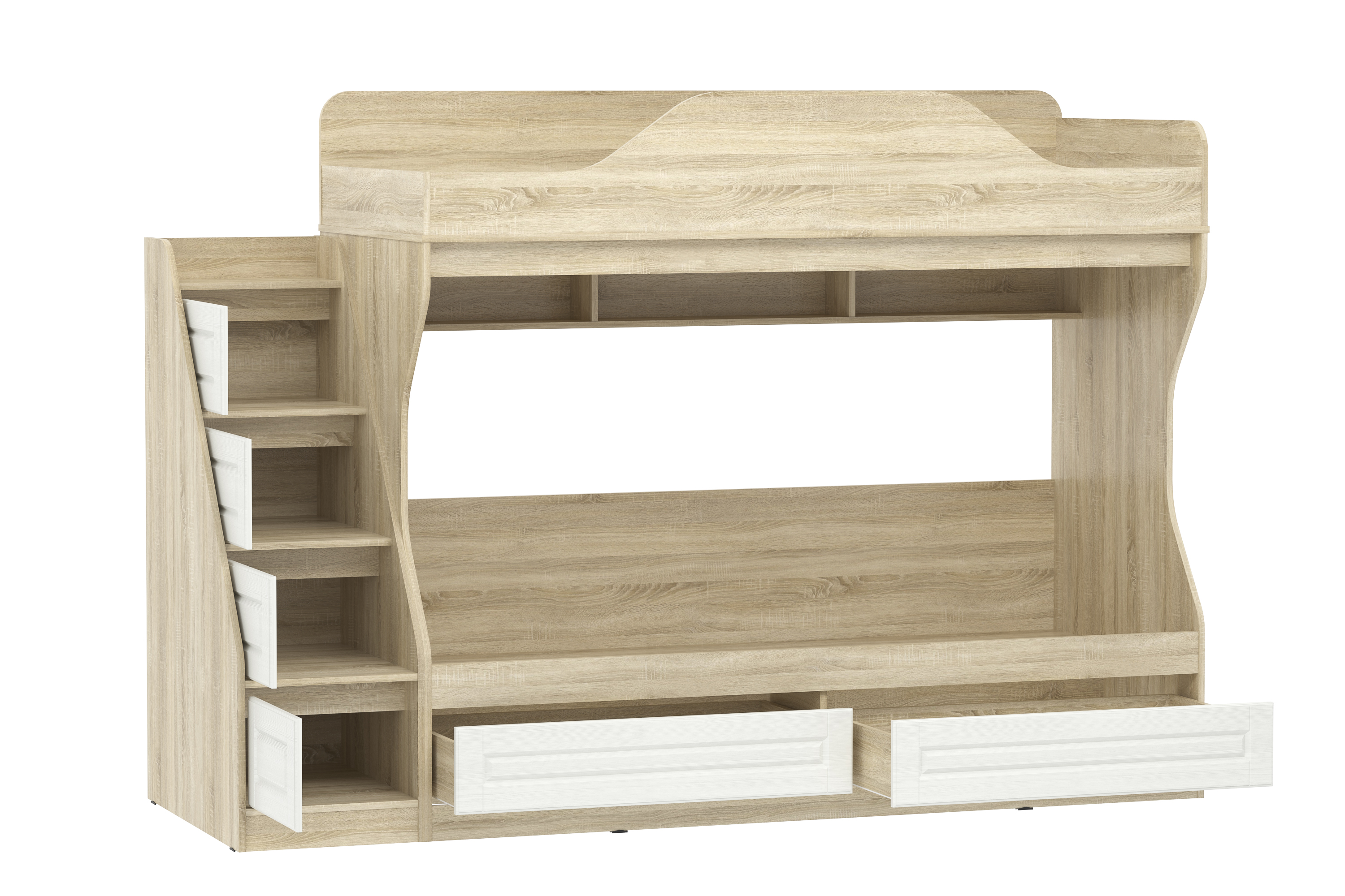 Кровать двухъярусная Оливия 041.51 Белое дерево, Дуб Сонома (спальные места 80х190) сборка на любую сторону