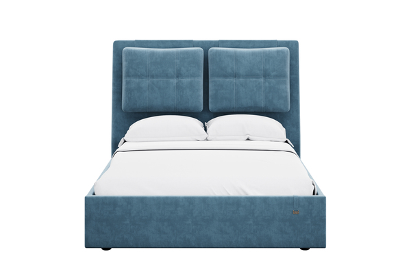 Кровати выполнены в нейтральных и в ярких тканях велюр, что позволяет подобрать подходящий вариант почти под любой интерьер. В качестве декора применяются декоративные подушки на изголовье.