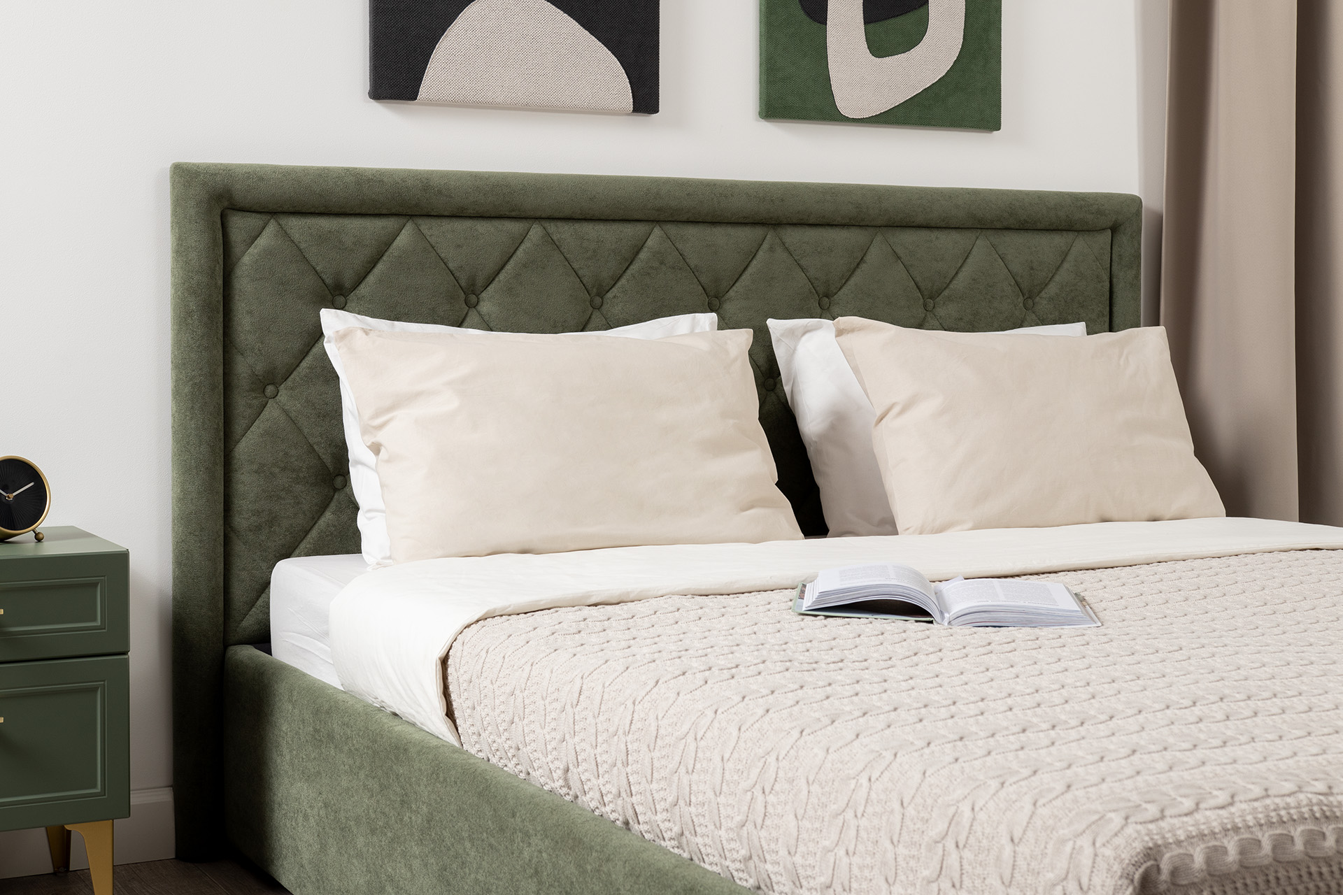 Кровать Марион — это идеальное сочетание стиля и комфорта. Элегантное изголовье оформлено стежкой в виде классической каретной стяжки, украшенной декоративными пуговицами, что придаёт изделию выразительный и утончённый вид. По всему периметру кровати проходит аккуратный валик, подчеркивающий геометрию и завершённость формы.
