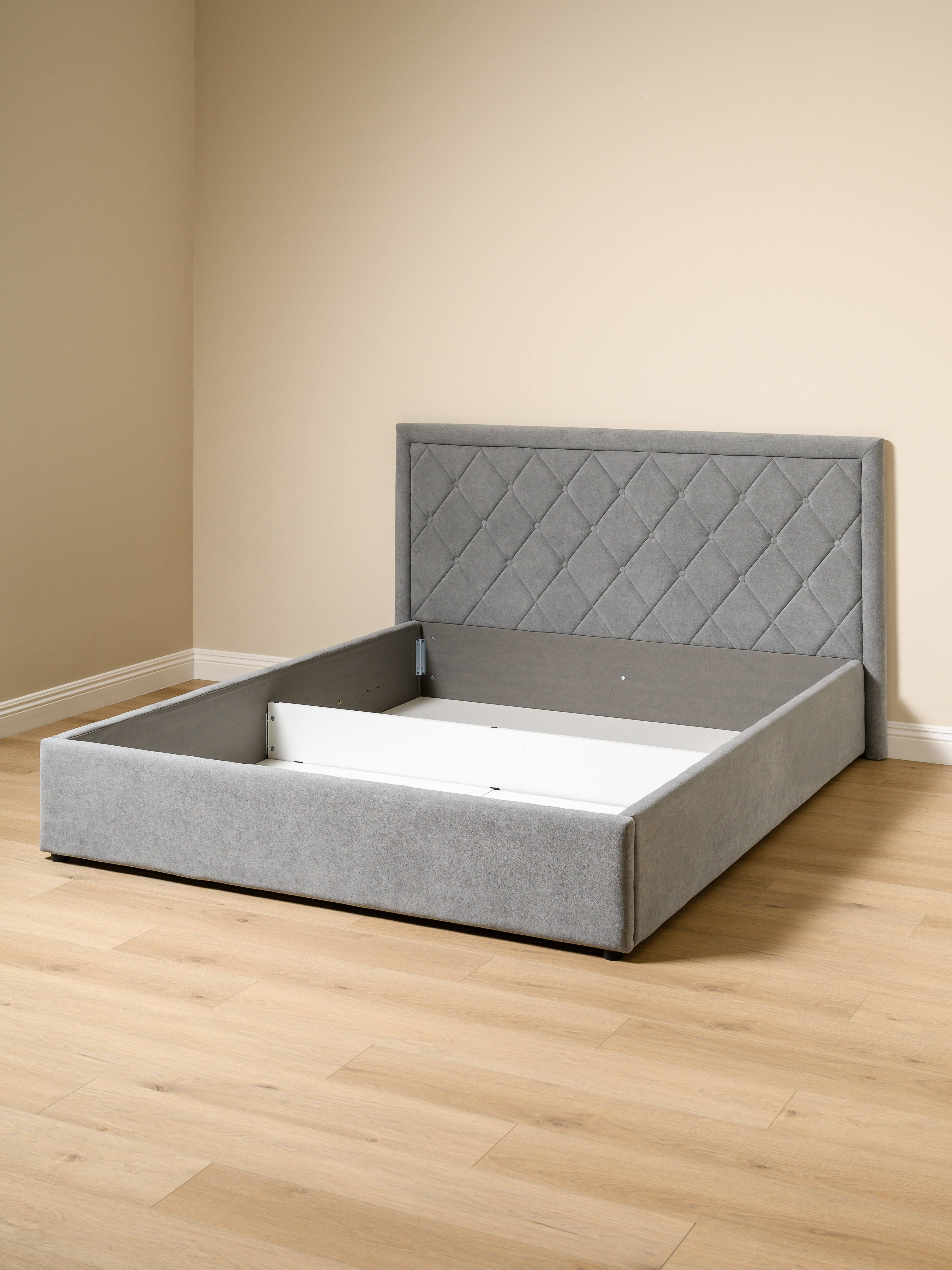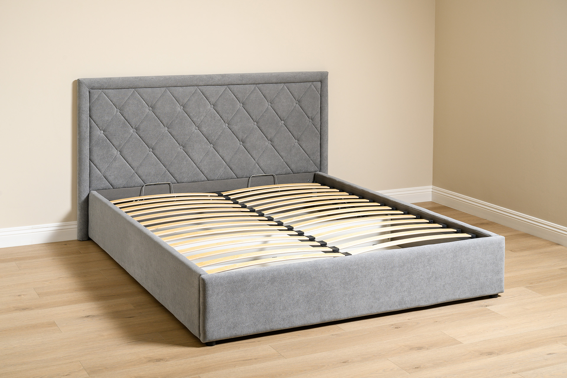 Основание кровати укомплектовано матрасодержателями. Жесткое кроватное дно из ЛДСП 16 мм на опорах 25 мм.