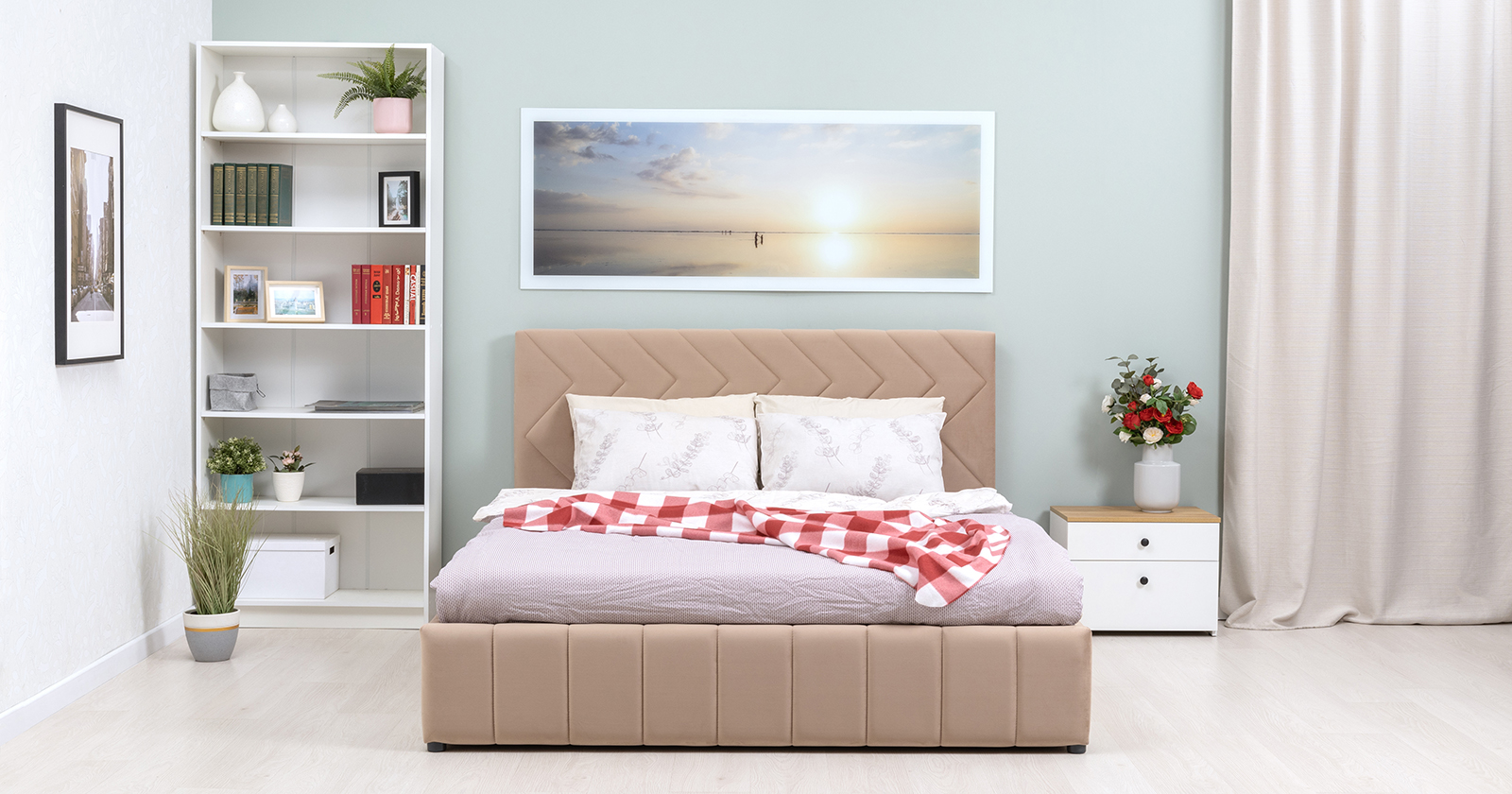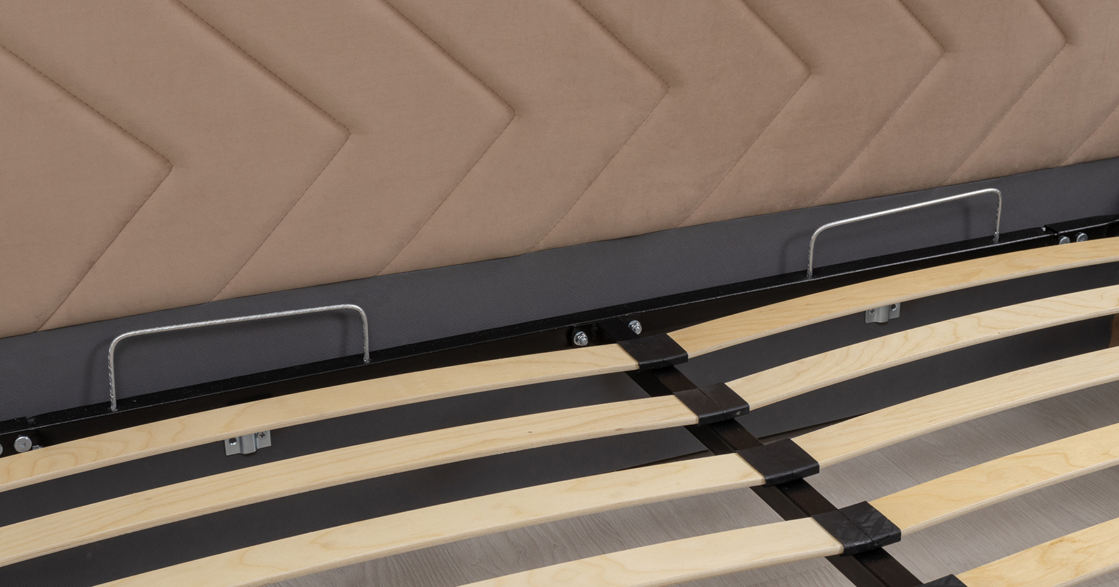 Кровать Милана 160 велюр бежевый кофейный с ортопедическим основанием и подъемным механизмом