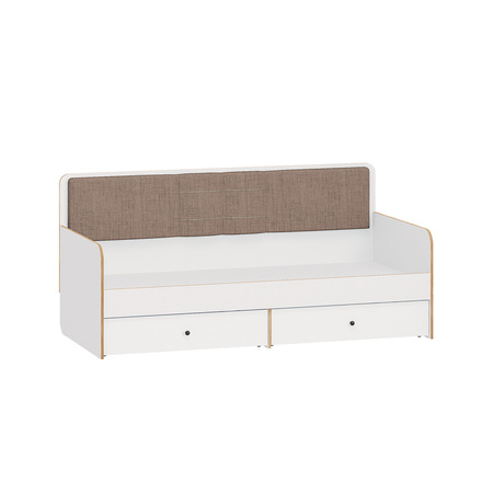 Кровать детская Вуди 11.02 белый премиум, дуб золотой CRAFT, саванна латте, эко 100 кожзам гранд белый