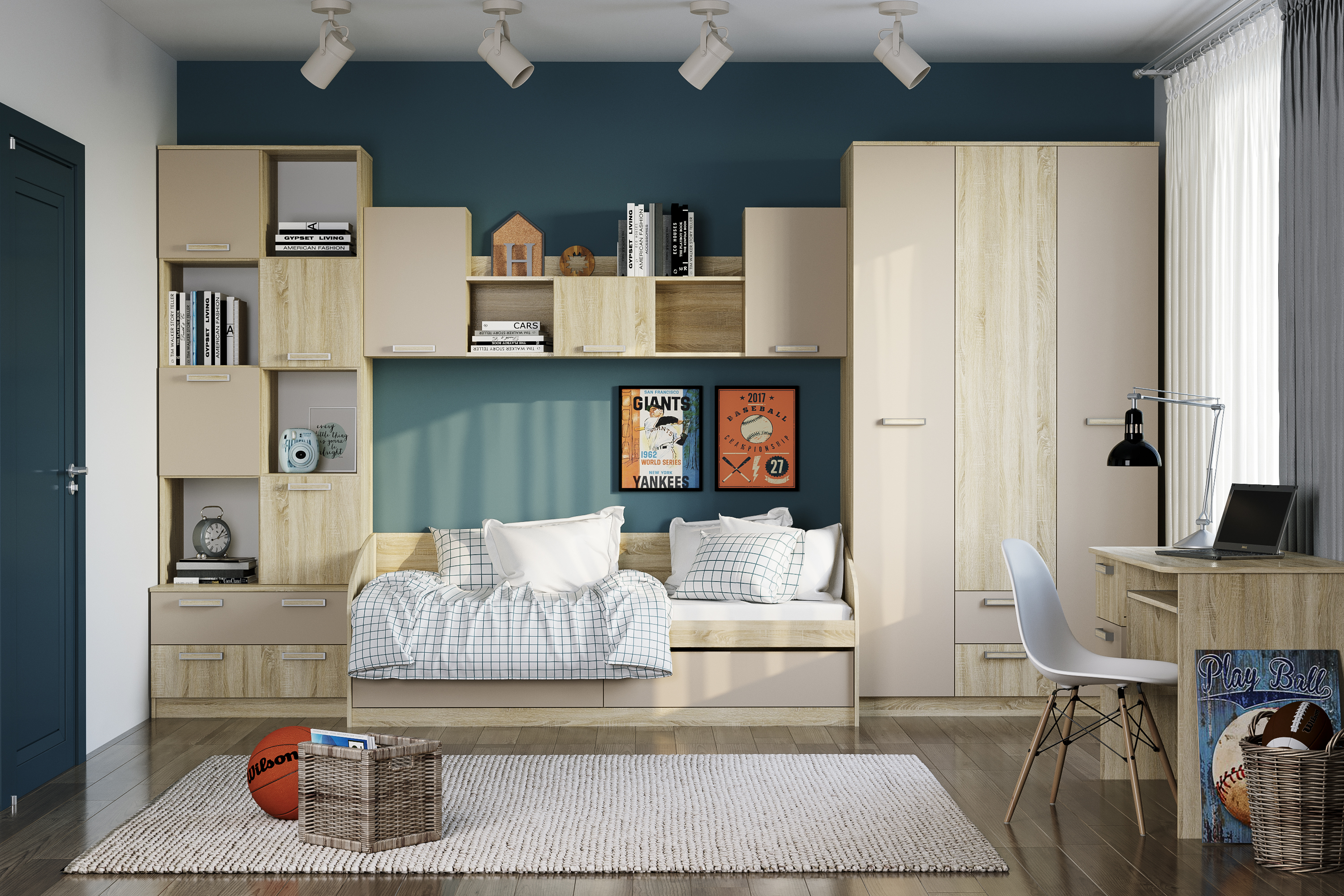 Кровать детская растущая Zoom НМ 041.08 дуб сонома (Акварель, Оливия, Фанк)