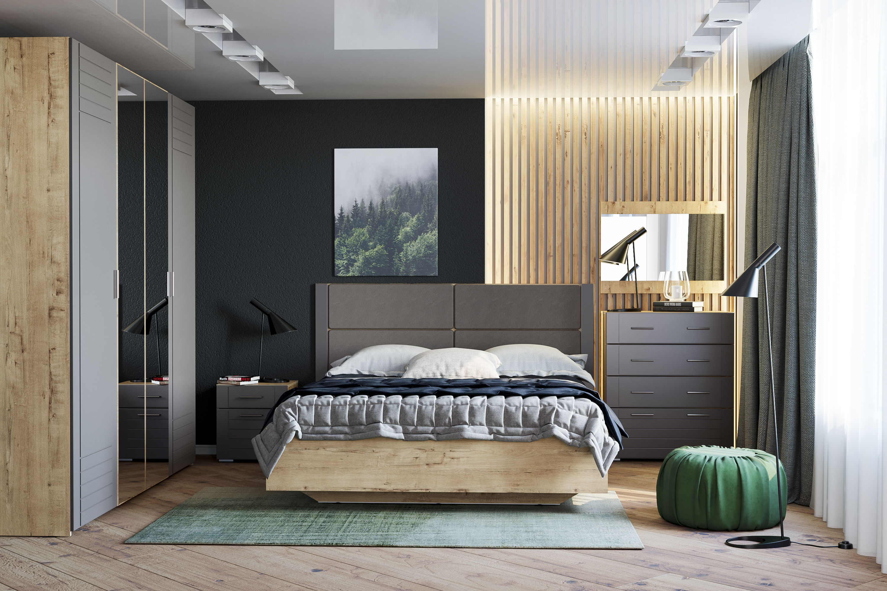 Кровать Livorno 160 с ортопедическим основанием и подъемным механизмом НМ 040.52 Х дуб бунратти, софт графит