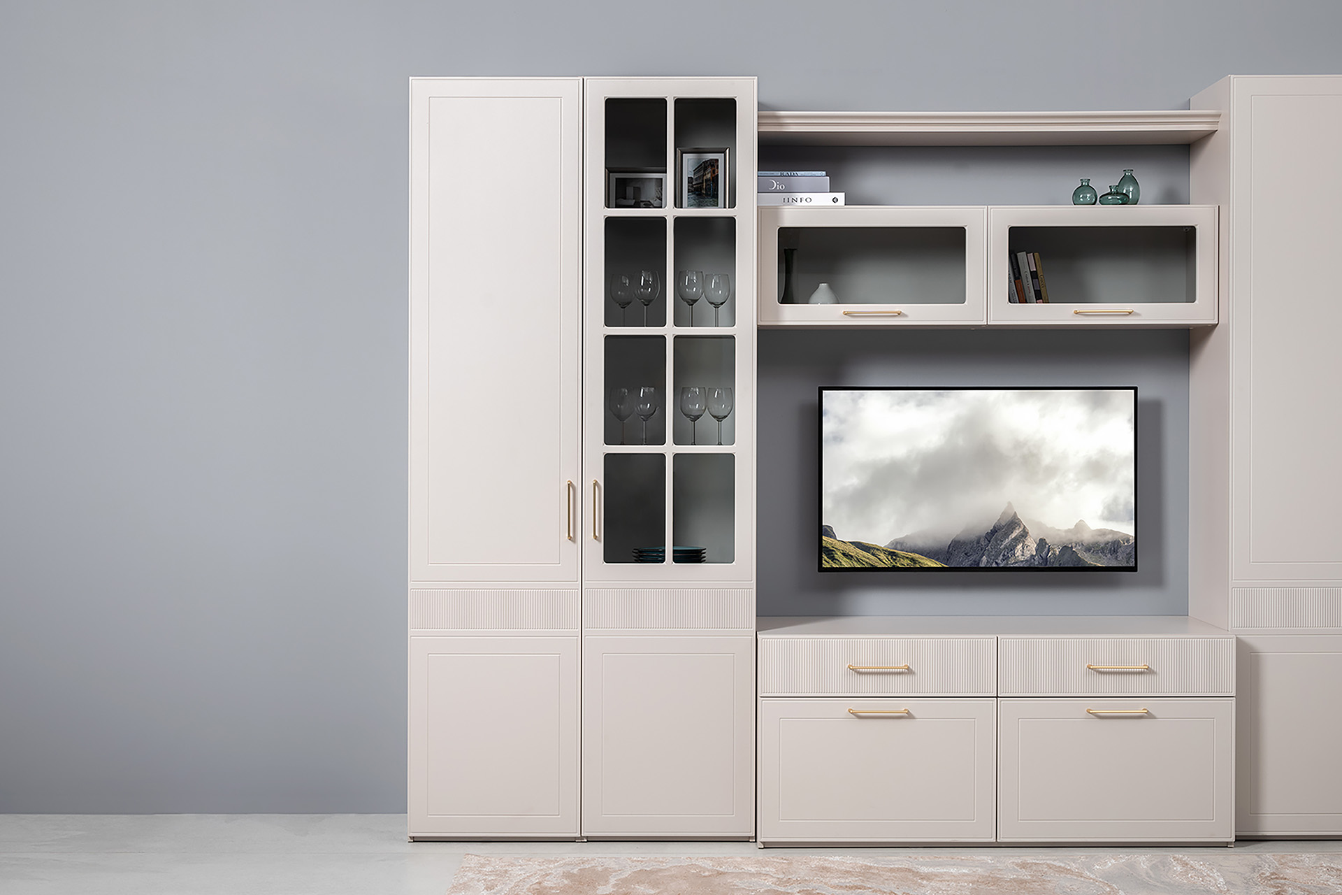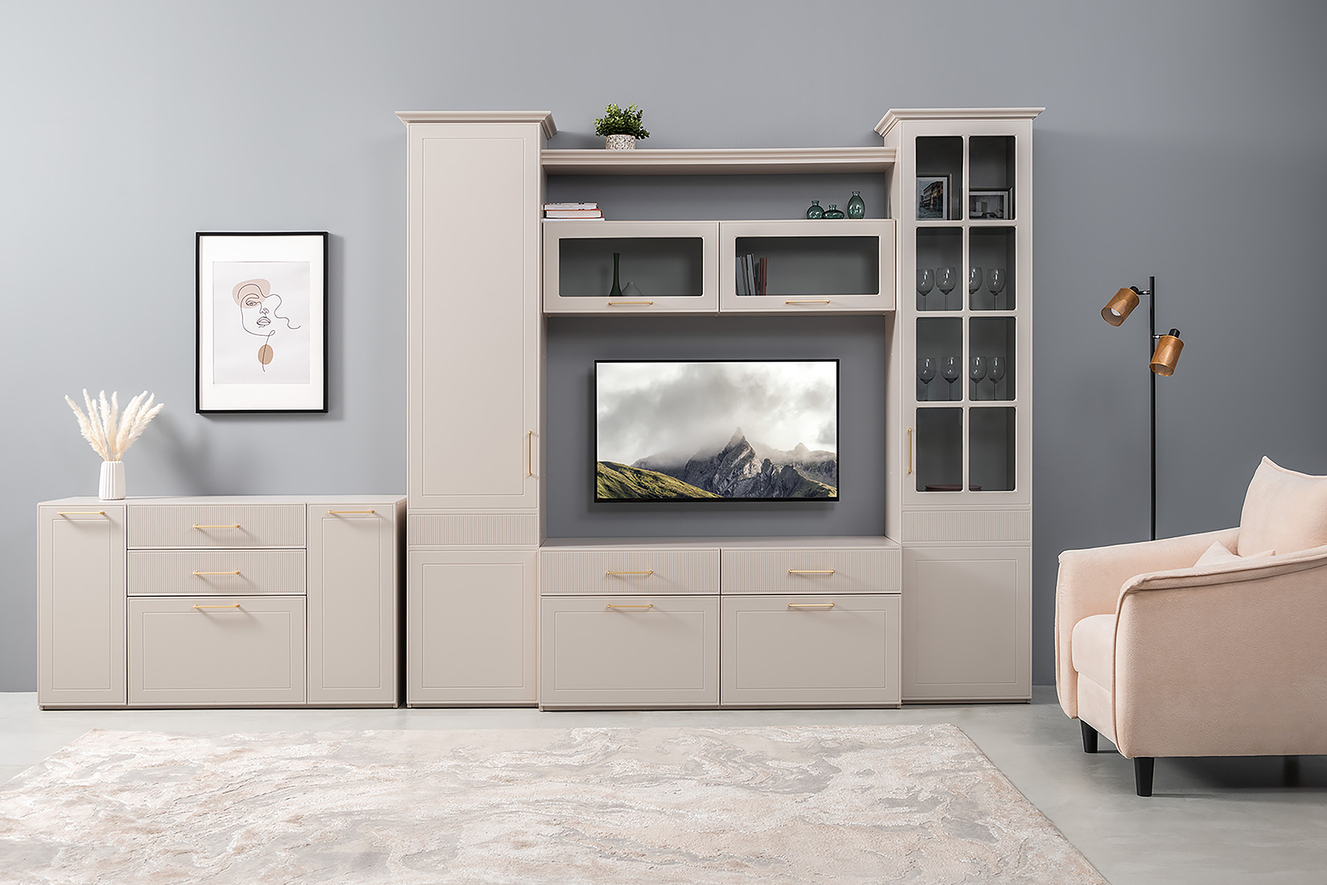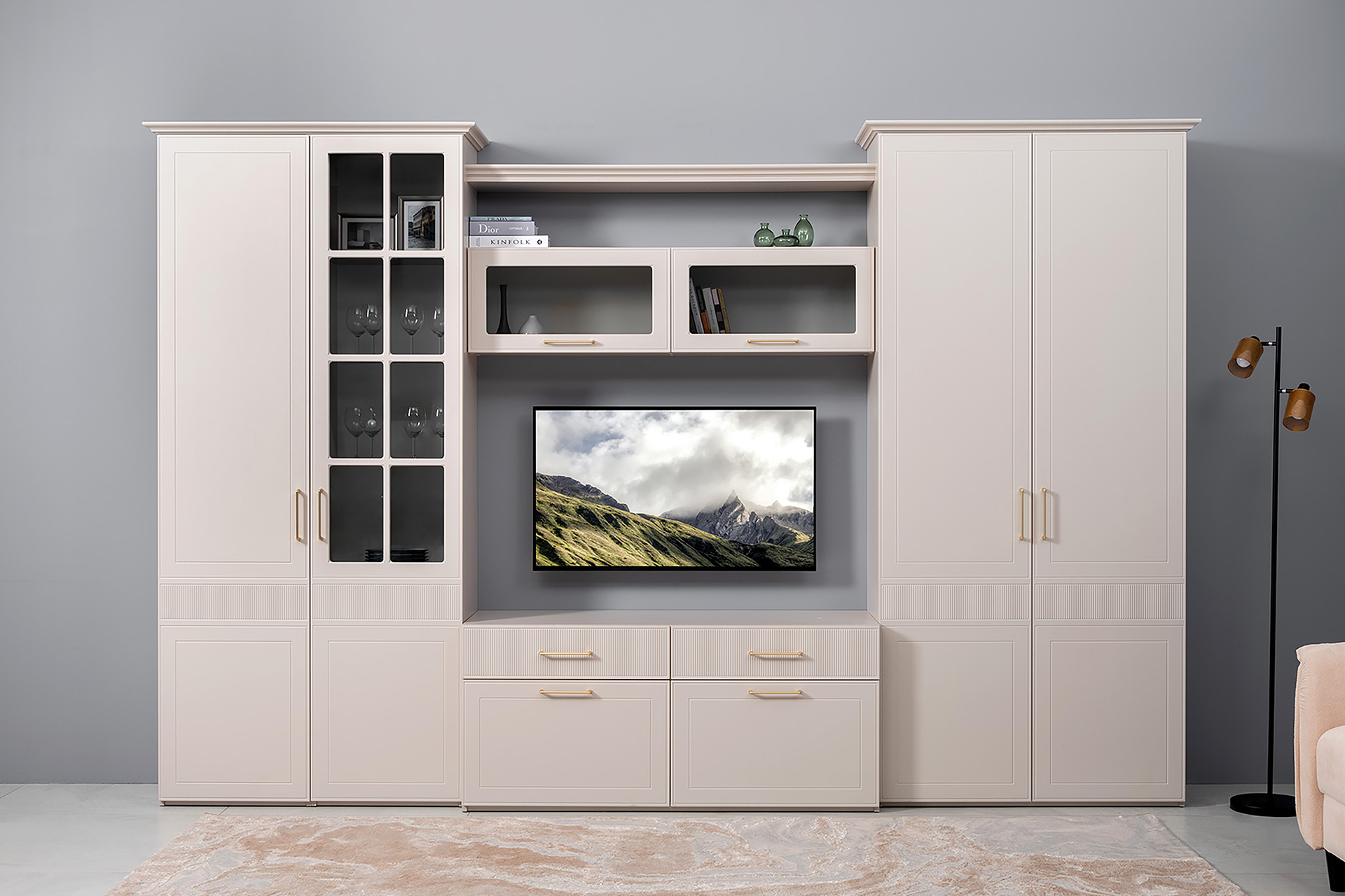 Шкаф-витрина Ричфорд 16.396 кашемир 5981 BS, моно керамика D166-2 ПВХ (собирается на любую сторону)