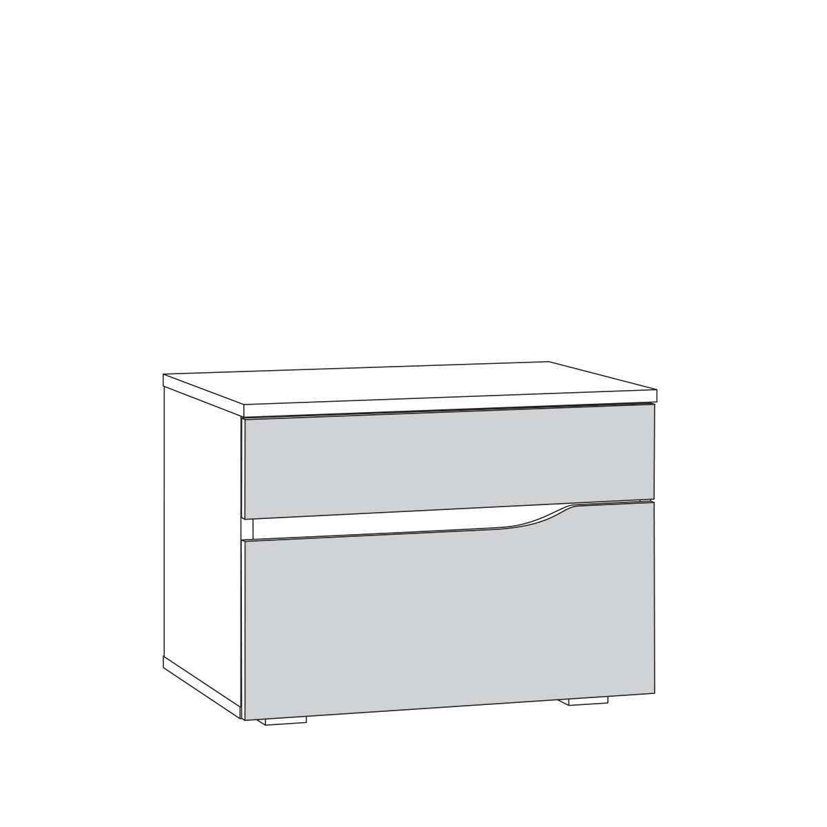 Наполнение шкафа может собрано на любую сторону, два выдвижных ящика скрыты за распашными фасадами, на обратной стороне которых размещается зеркало.