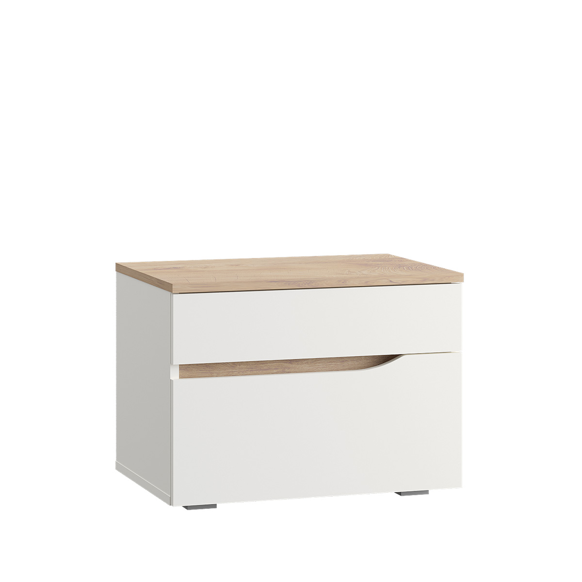 Лицевую фурнитуру заменяет стильный вырез, за которым видно древесный декор корпуса. Вырезы делают внешний вид изделий асимметричным, что делает композицию современной и динамичной.
