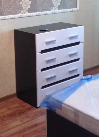 Скромный и в то же время оригинальный дизайн комода Техно отлично дополнит как гостиную комнату, спальню, так и прихожую. Очень органично комод смотрится в композиции спального гарнитура Техно или с гостиной той же серии мебели.