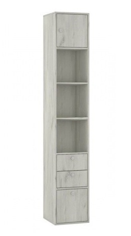 1. без цветных фасадов с фотопечатью - открытый стеллаж с тремя ящиками внизу и верхним фасадом