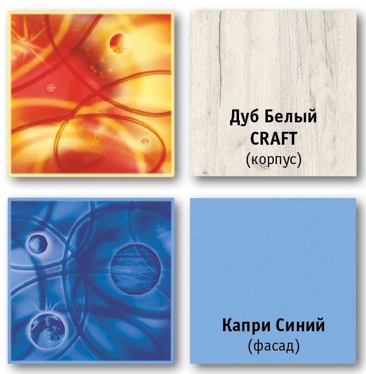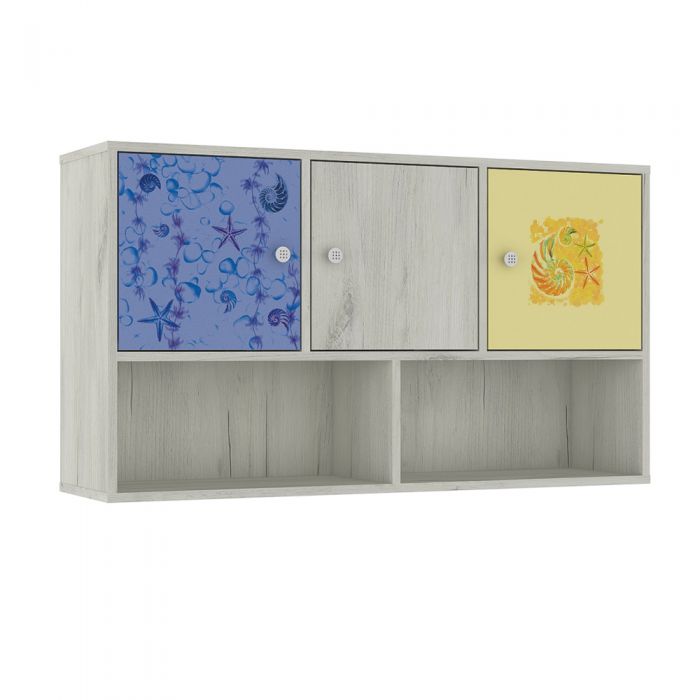 Полка навесная Тетрис 1 359 дуб белый craft капри синий фотопечать море