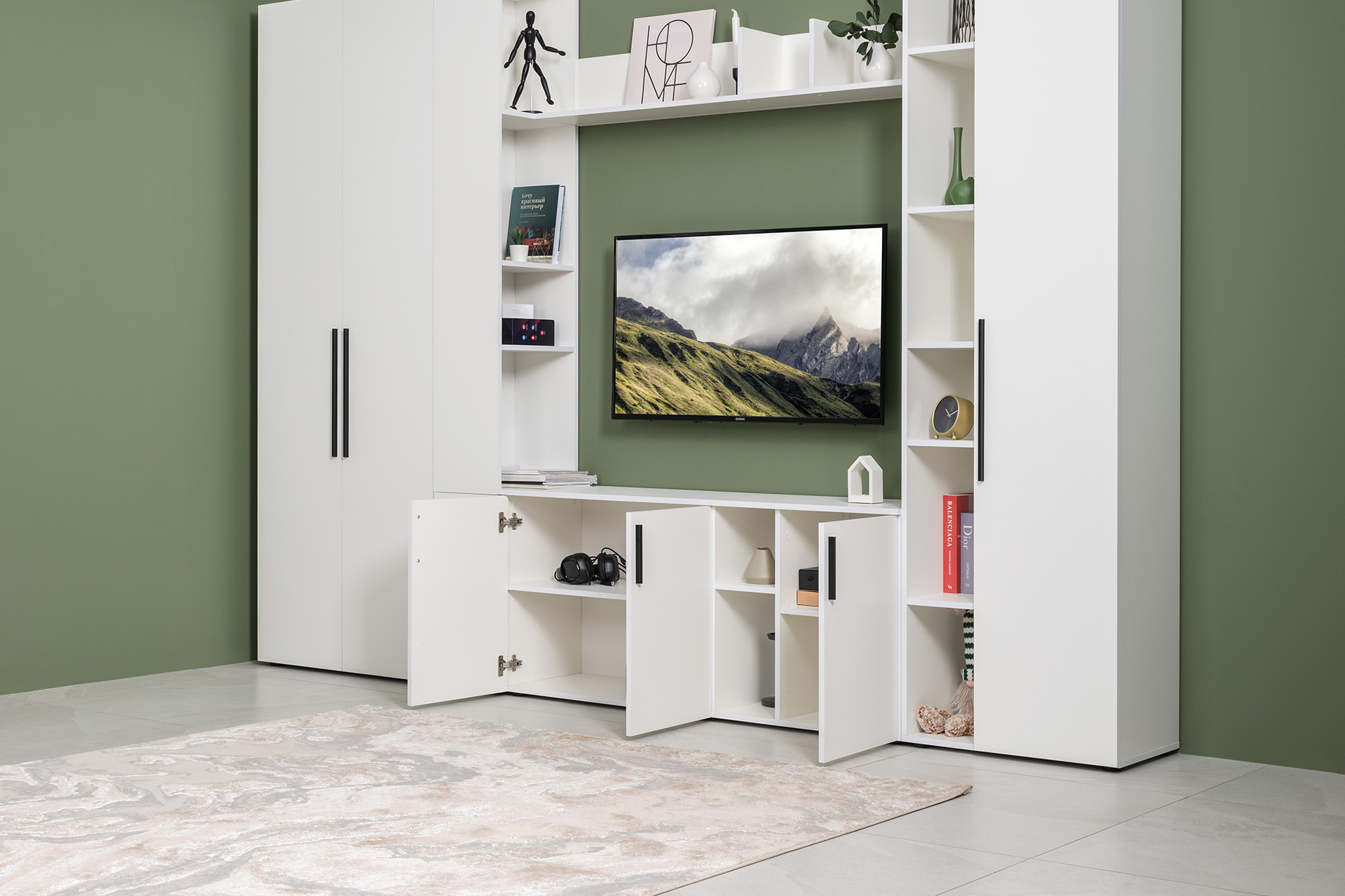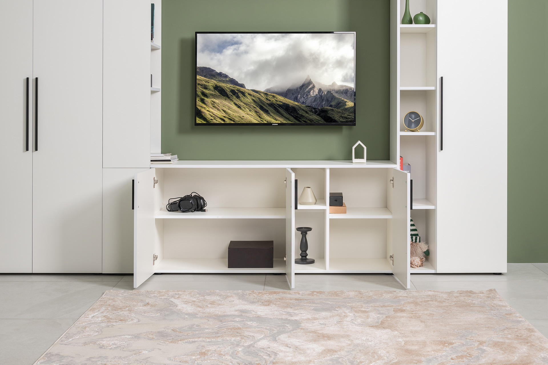 Тумба под ТВ в гостиную 13.267.03 белый PE шагрень, альберо, милк софт ПВХ