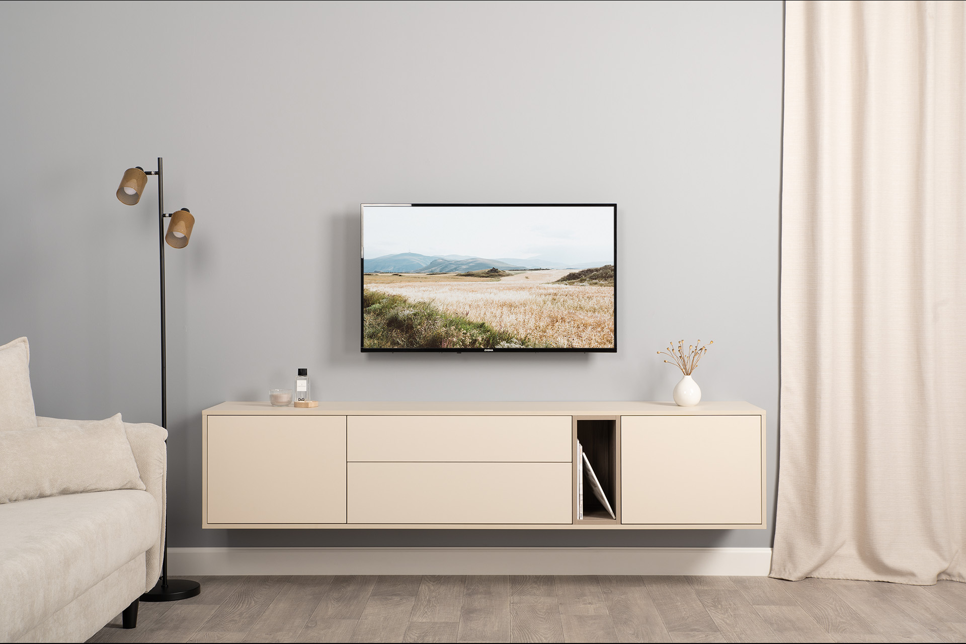 Тумба под ТВ в гостиную Бьянка ясень анкор светлый