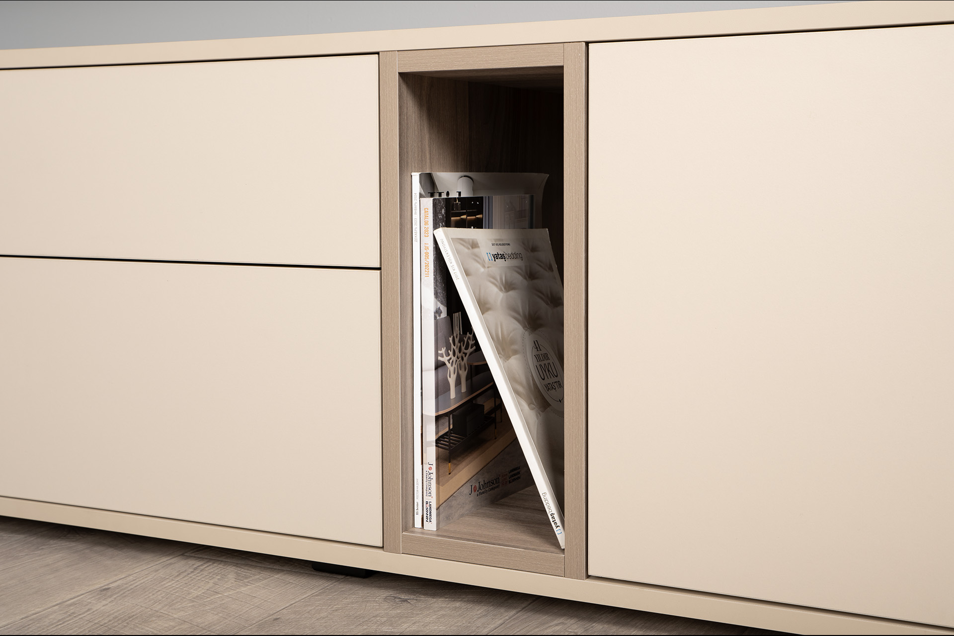 Тумба под ТВ в гостиную 13.267.03 белый PE шагрень, альберо, милк софт ПВХ